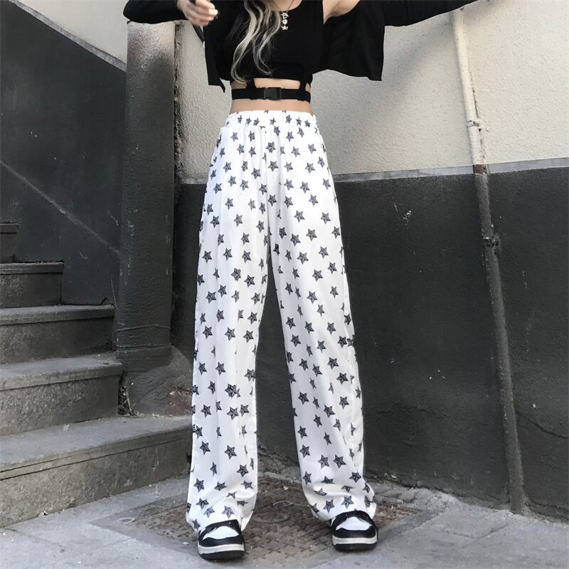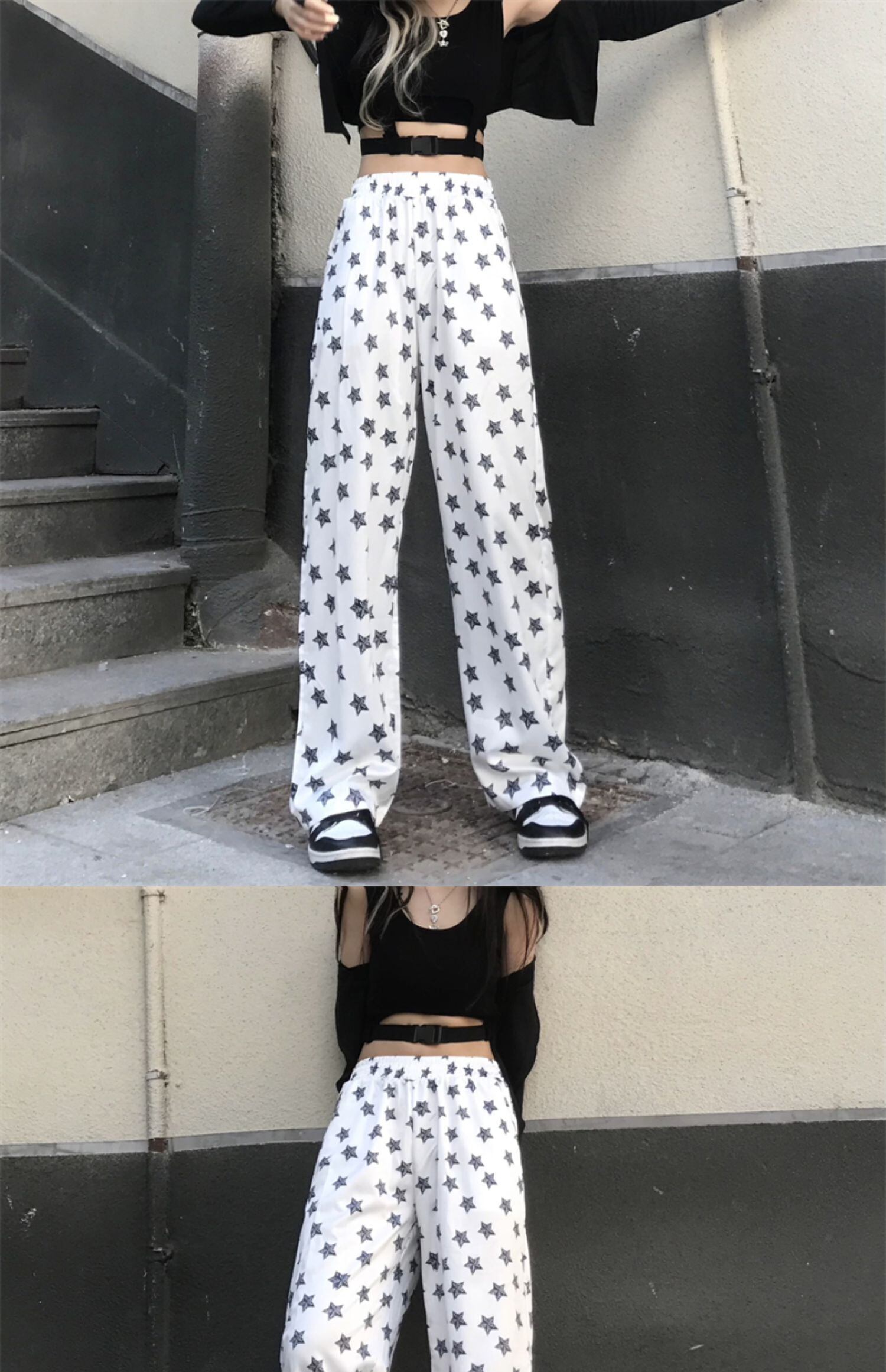 カジュアルパンツ 夏服トレンドプリント柄ルーズハイウェストウェストワイドレッグ 夏物 ワイドパンツ ボーイズ ウエスト デーモン63021456398