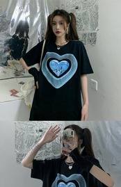 スタイルTシャツレディース夏服韓国ファッショントレンドプリントブラックルーズトップス 原宿 夏物 デーモン67492010467