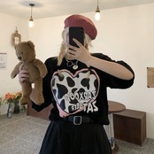 夏服Tシャツレディース韓国ファッショントレンドプリントルーズトップス 夏物 スタイル デーモン85822181476