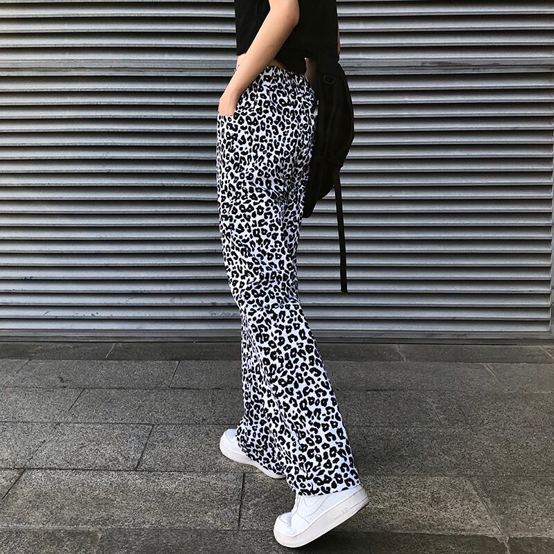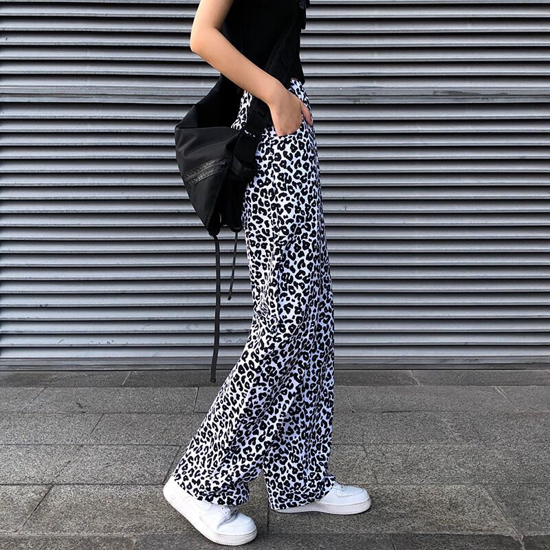 夏服薄手パンツ レディーストレンドホワイトレオパードプリント柄ワイドレッグハイウェストウェストルーズカジュアル ストリート 夏物 ワイドパンツ ウエスト デーモン62456071134