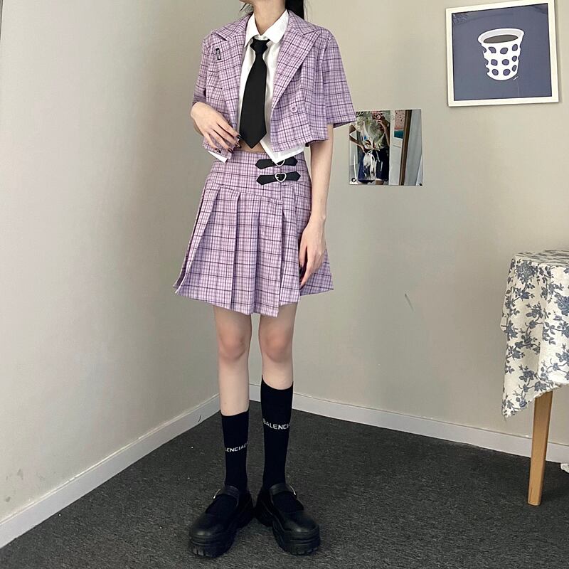 レディース夏服トレンドショート格子柄プリーツスカート 夏物 デーモン29836380356