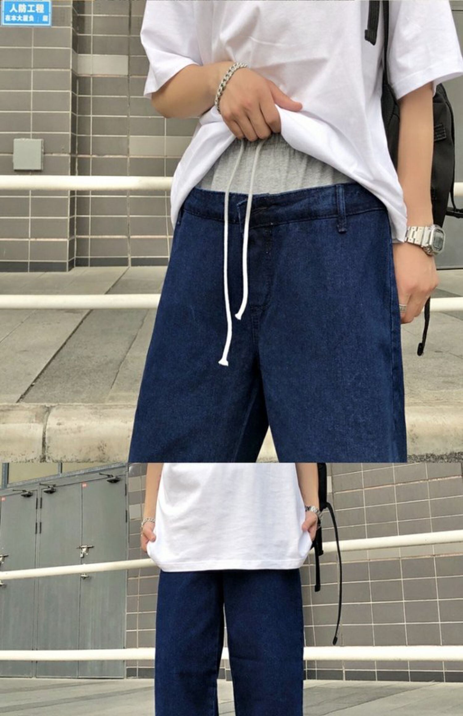 ダブルウェストジーンズ レディース夏服トレンドハイウェストルーズカジュアルワイドレッグパンツ 夏物 ワイドパンツ ステッチ ウエスト デーモン49314594628
