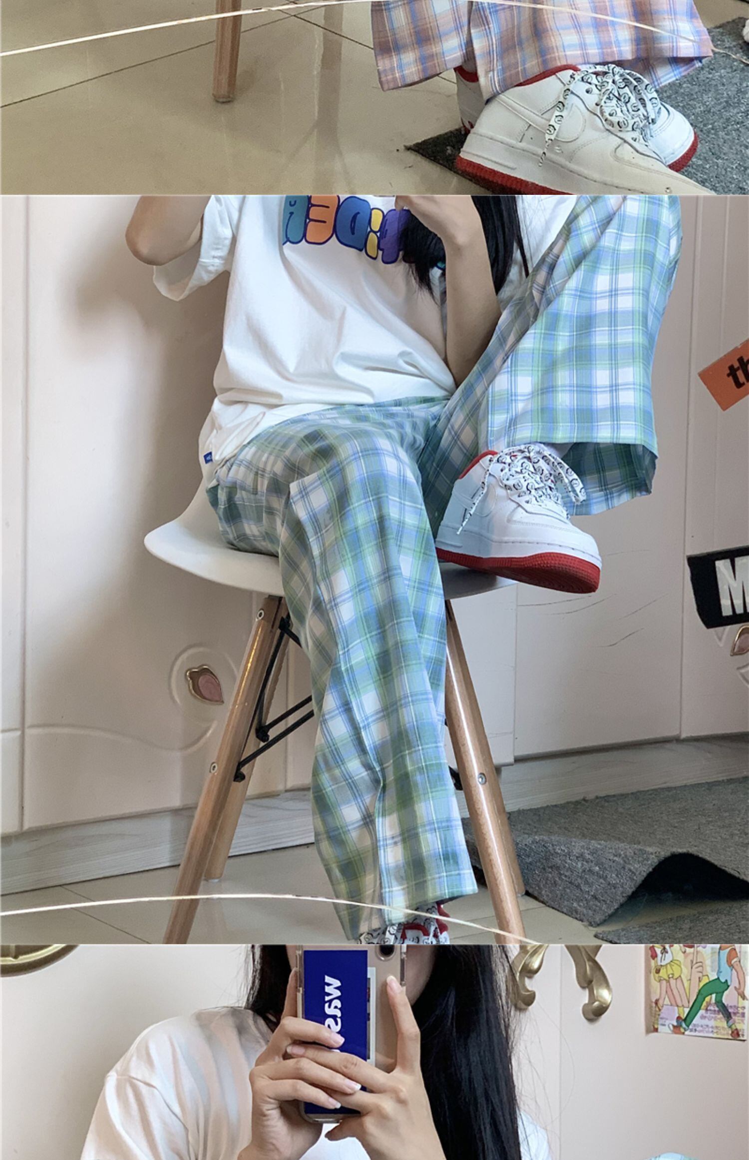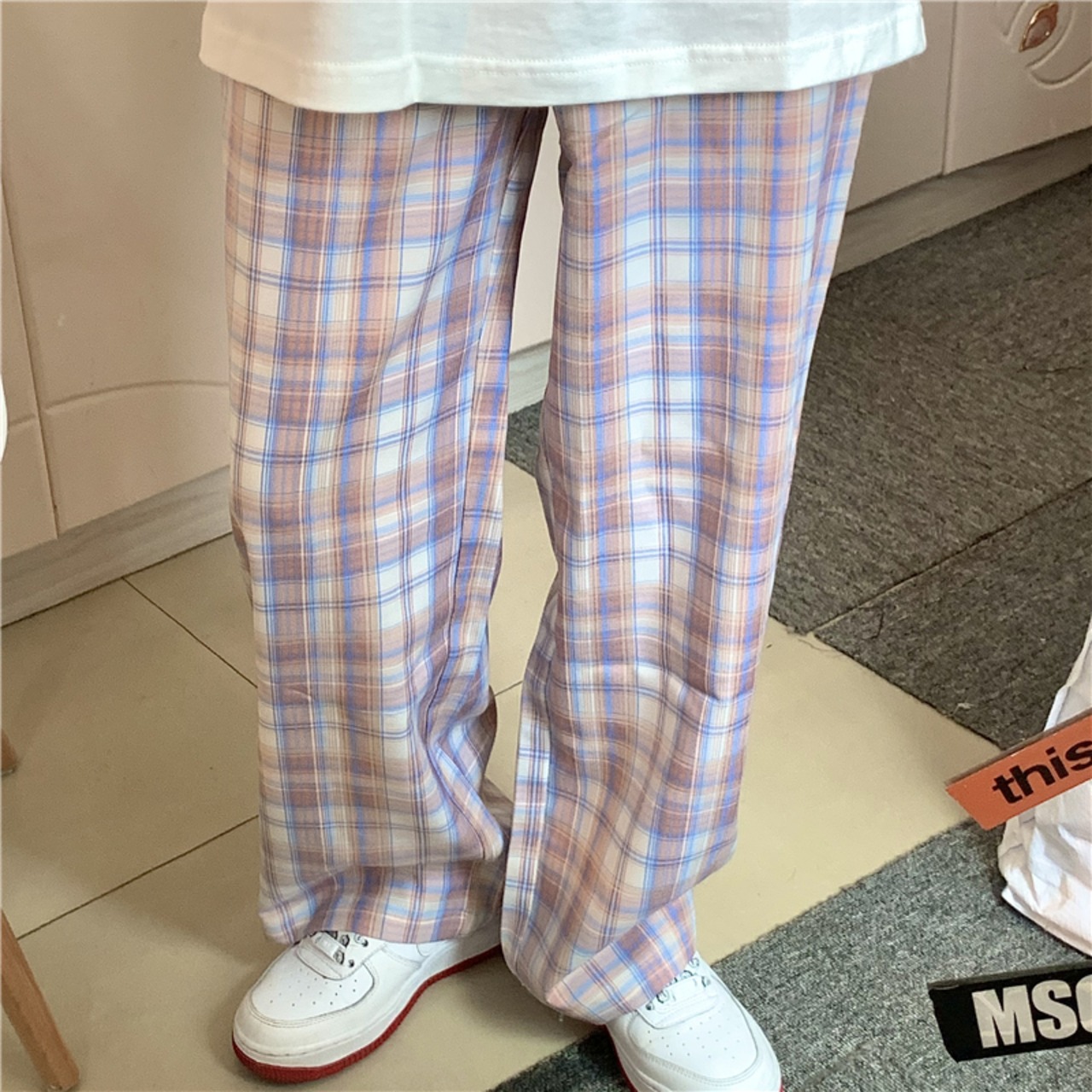 夏服格子柄パンツ レディーストレンドスタンダード薄手ルーズカジュアル レトロ 夏物 デーモン66785355490