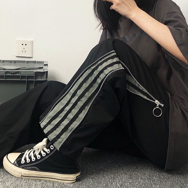 夏服カジュアルパンツ レディーストレンドチェーン ストライプルーズハイウェストウェストワイドレッグ 夏物 ワイドパンツ ボーイズ ウエスト デーモン51290698821