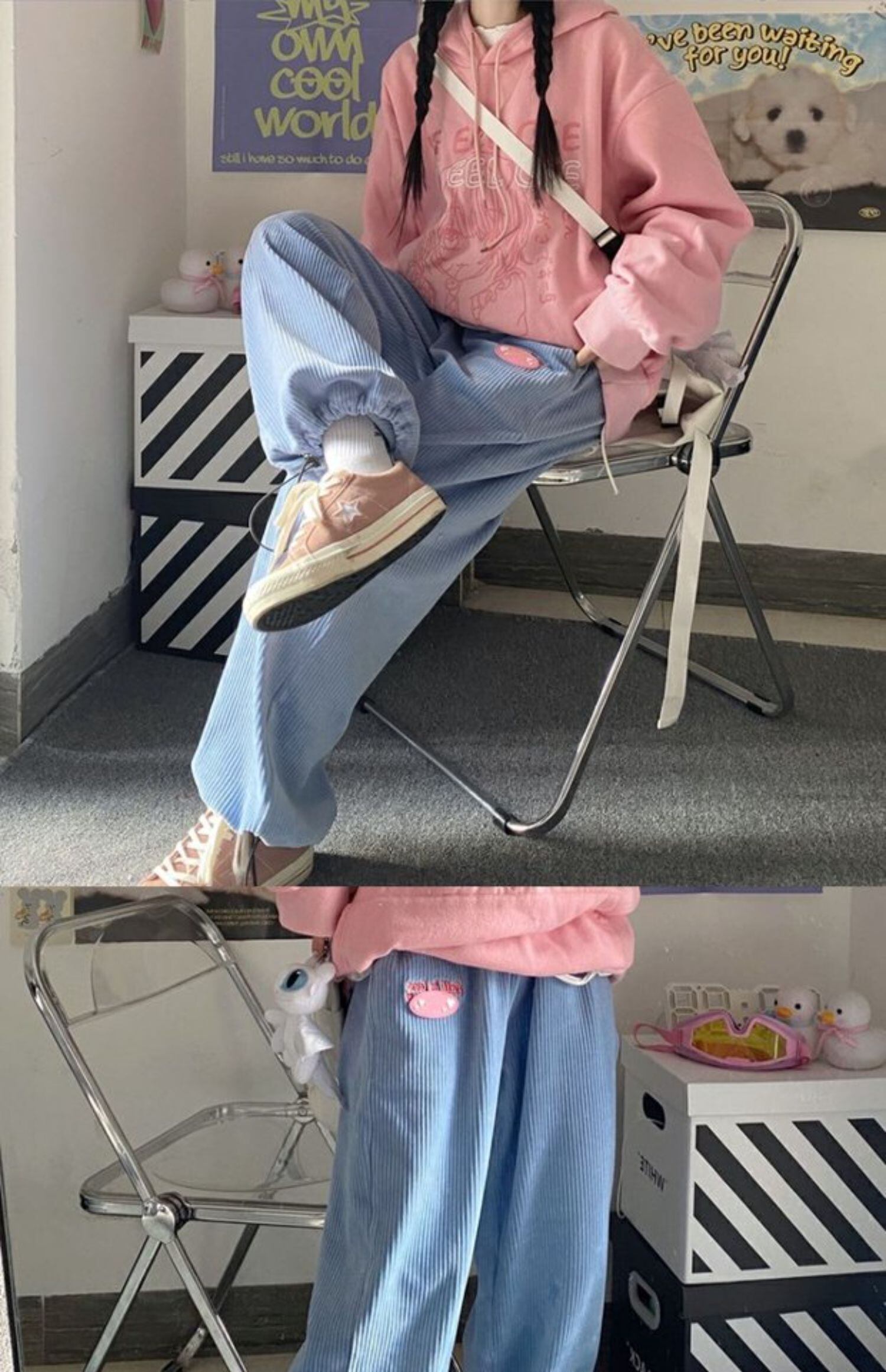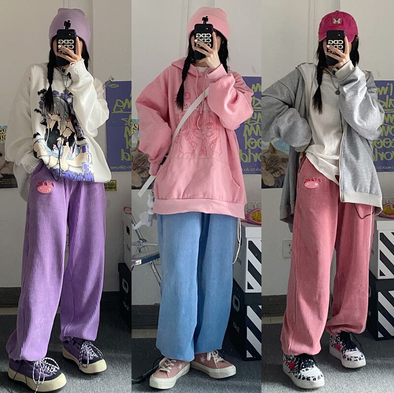 パンツ 夏服トレンドコーデュロイハイウェストウェストルーズスリム ストリート 夏物 ウエスト デーモン51667752192