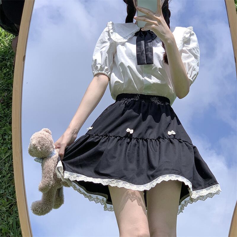 夏服レディーストレンドハイウェストウェストブラックスカート カラーシャツ 大人ガーリー スウィート キュート カジュアル 夏物 ウエスト デーモン3182322856
