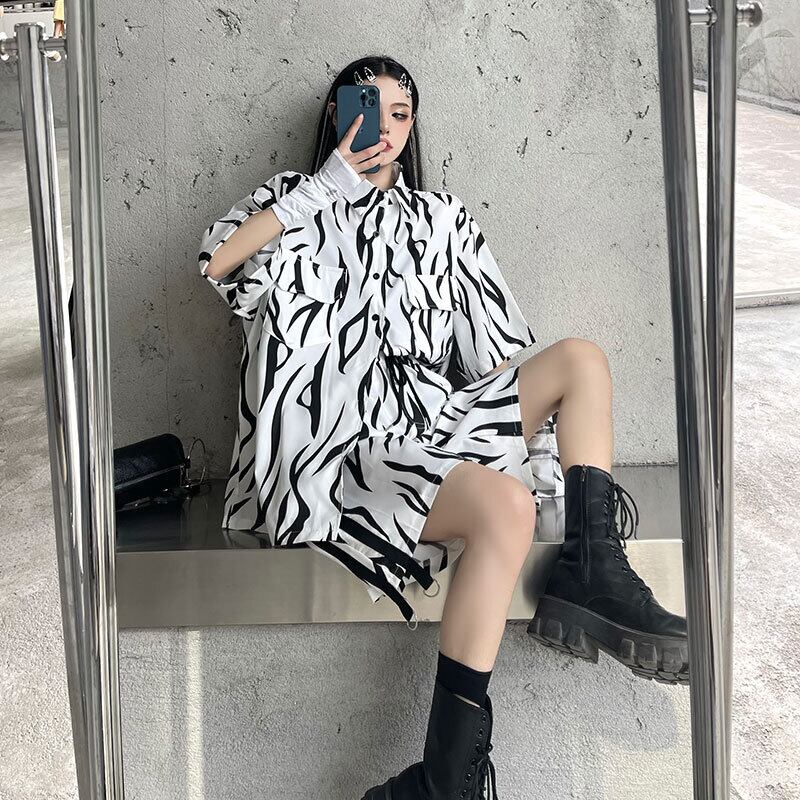 レディース夏服トレンドスタンダードパターンシャツ ショーツ レトロ 夏物 ボーイズ デーモン74898171299