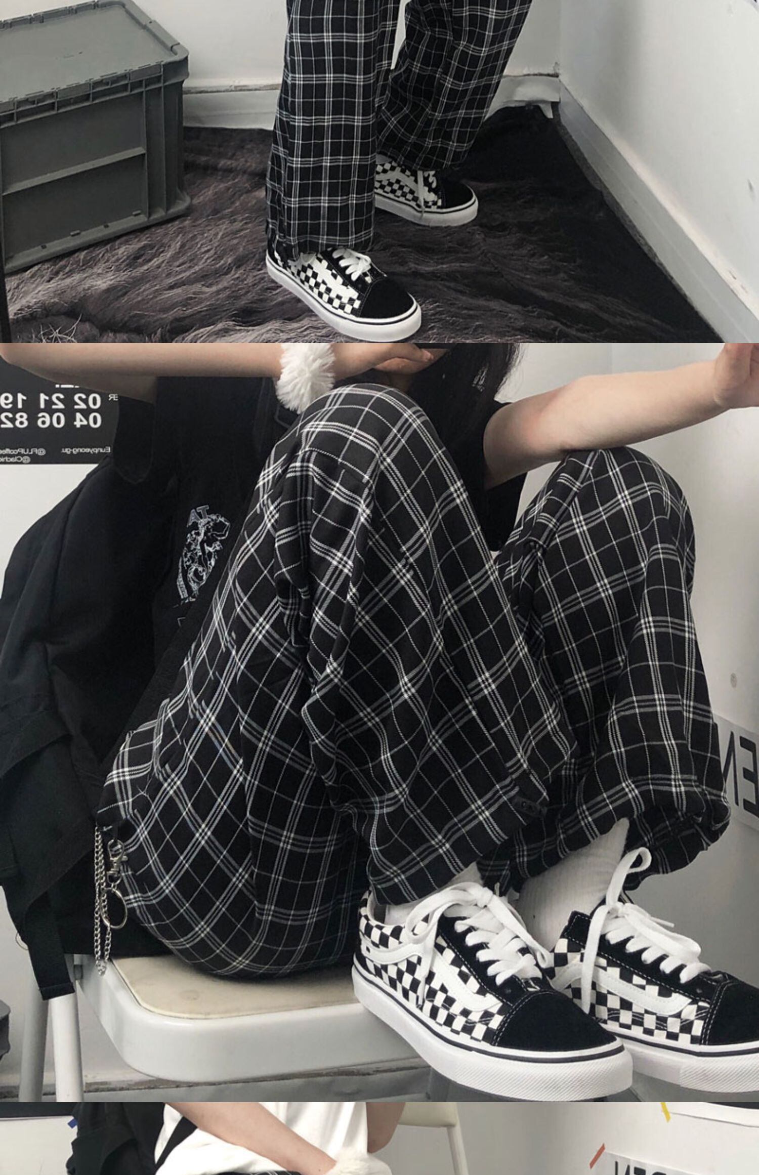 ギャザーカジュアルパンツ レディース夏服トレンドスタンダード格子柄ハイウェストウェストルーズワイドレッグ レトロ ストリート 夏物 ワイドパンツ ウエスト デーモン41409785890