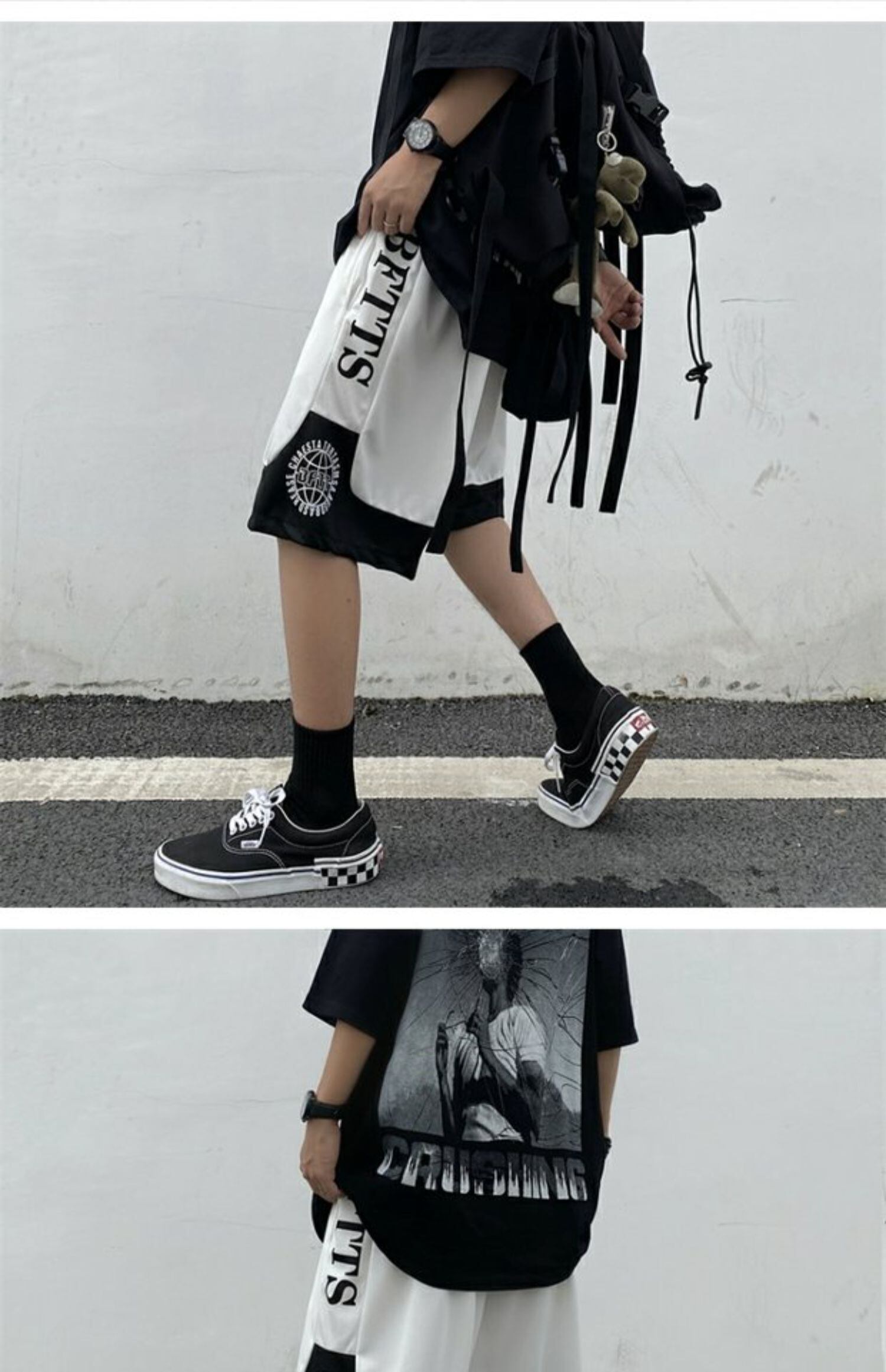 パンツ 夏服トレンドスタンダードプリントショーツ ルーズ薄手カジュアル レトロ 夏物 ステッチ ボーイズ デーモン79697870461
