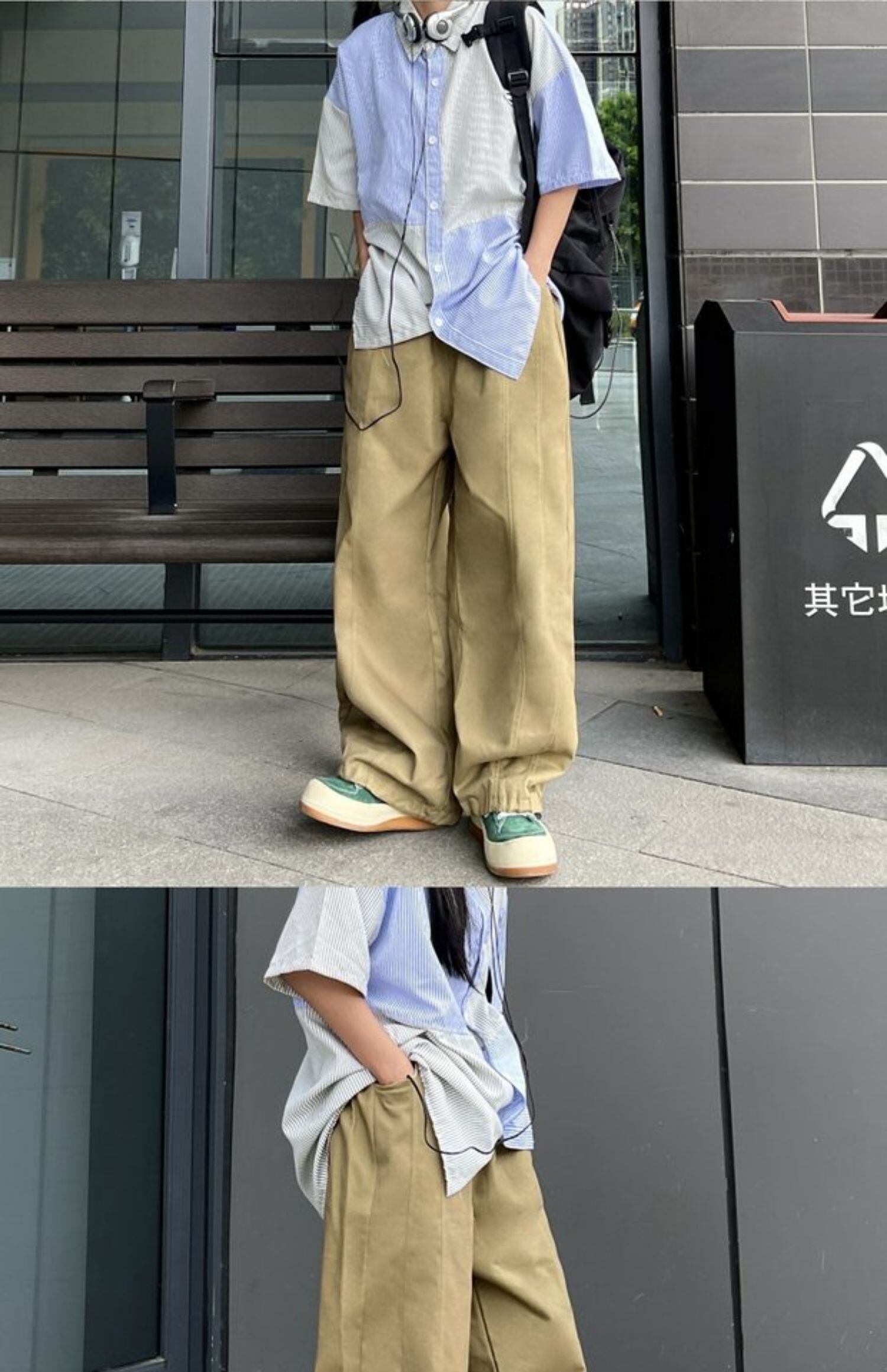 夏服トレンドカジュアルカーキワイドレッグパンツ ハイウェストウェストルーズ 夏物 ワイドパンツ ボーイズ ウエスト デーモン53700541360