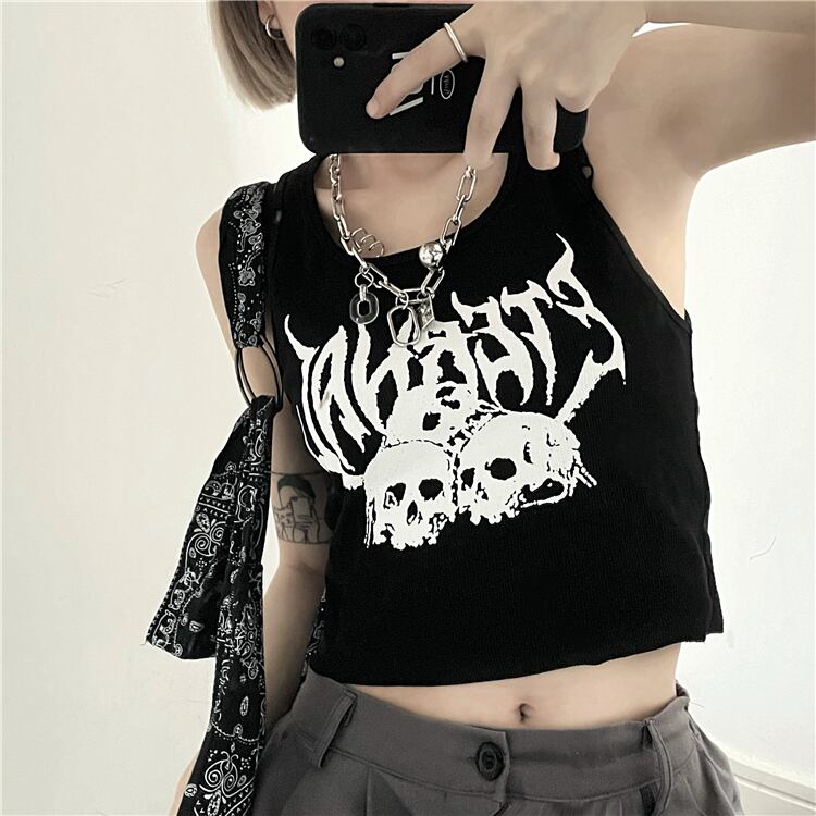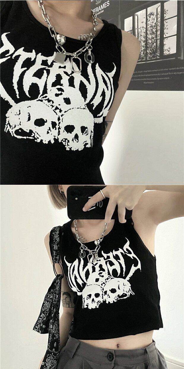 夏服ショートレディース韓国ファッショントレンドダークプリントルーズブラックトップス 夏物 スタイル デーモン21337139866