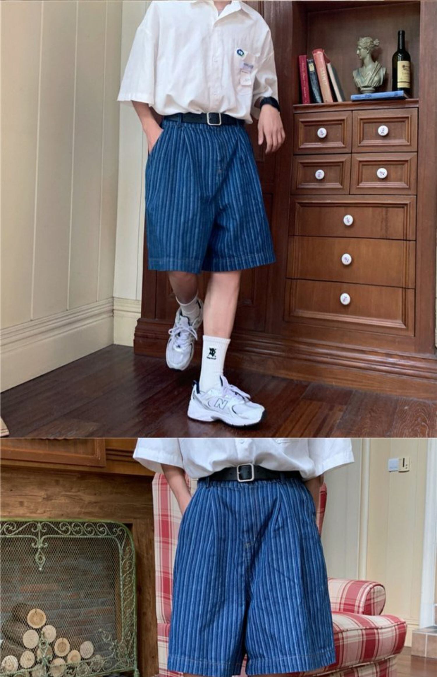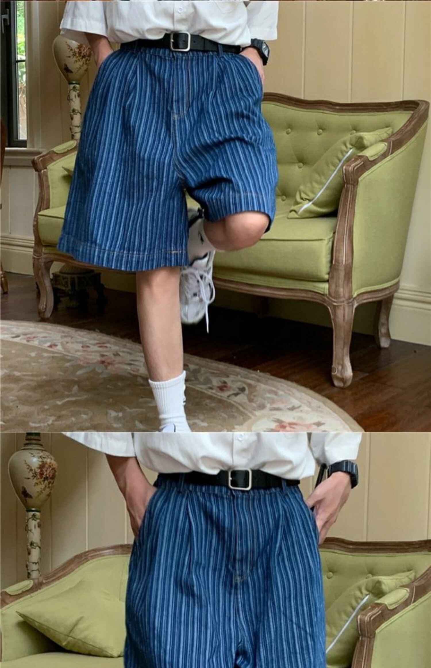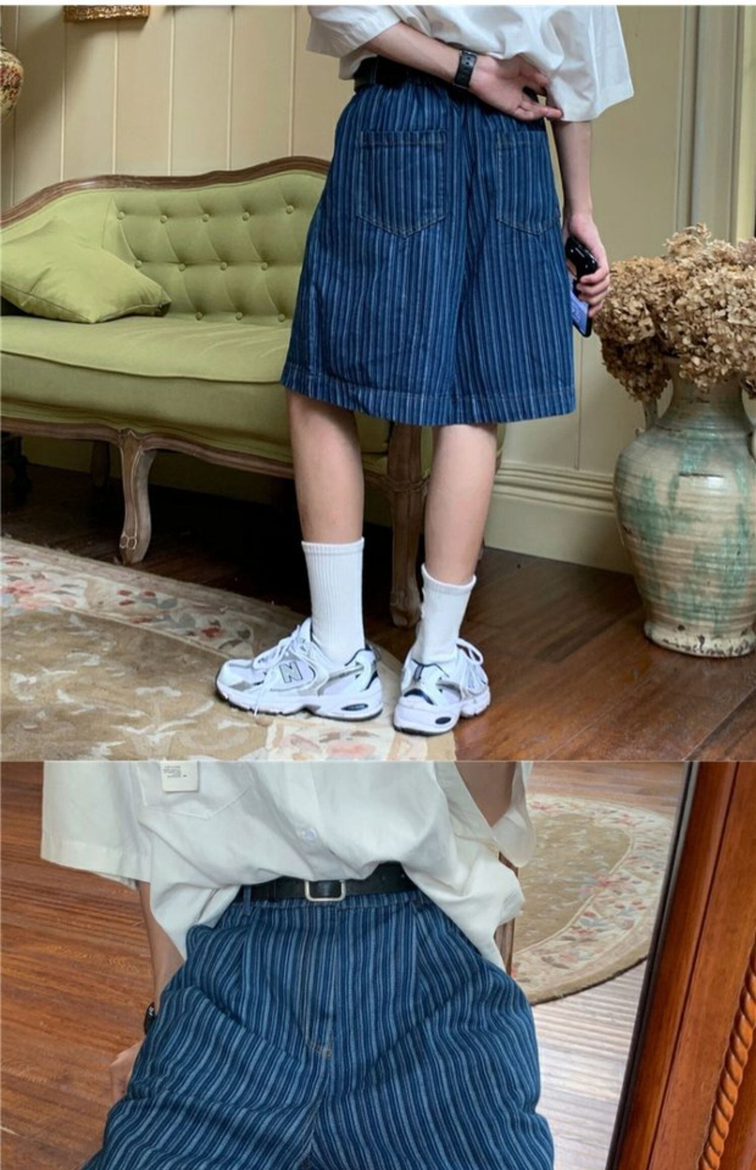 ショーツ レディース夏服トレンドスタンダードストライプパンツ ルーズ薄手カジュアル レトロ 夏物 ボーイズ デーモン71098557259