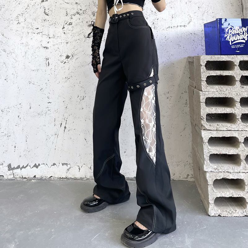 カジュアルパンツ 夏服トレンドダークレースルーズ薄手 大人ガーリー スウィート キュート 夏物 ステッチ デーモン80541251717