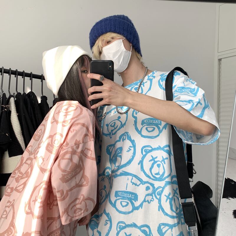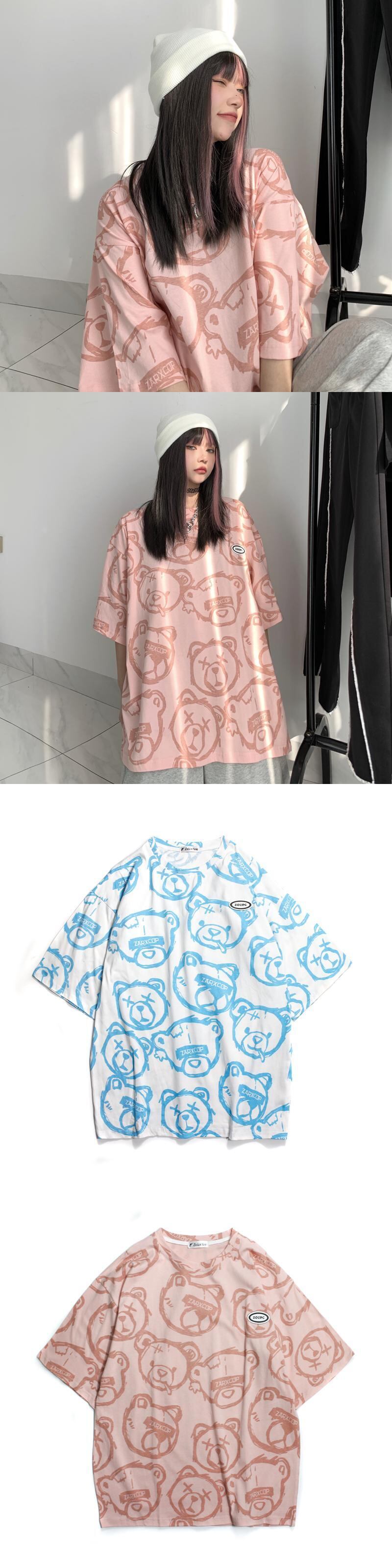 夏服Tシャツレディース韓国ファッショントレンドプリント柄ルーズラウンドネックトップス 夏物 Oネック スタイル デーモン25824029577