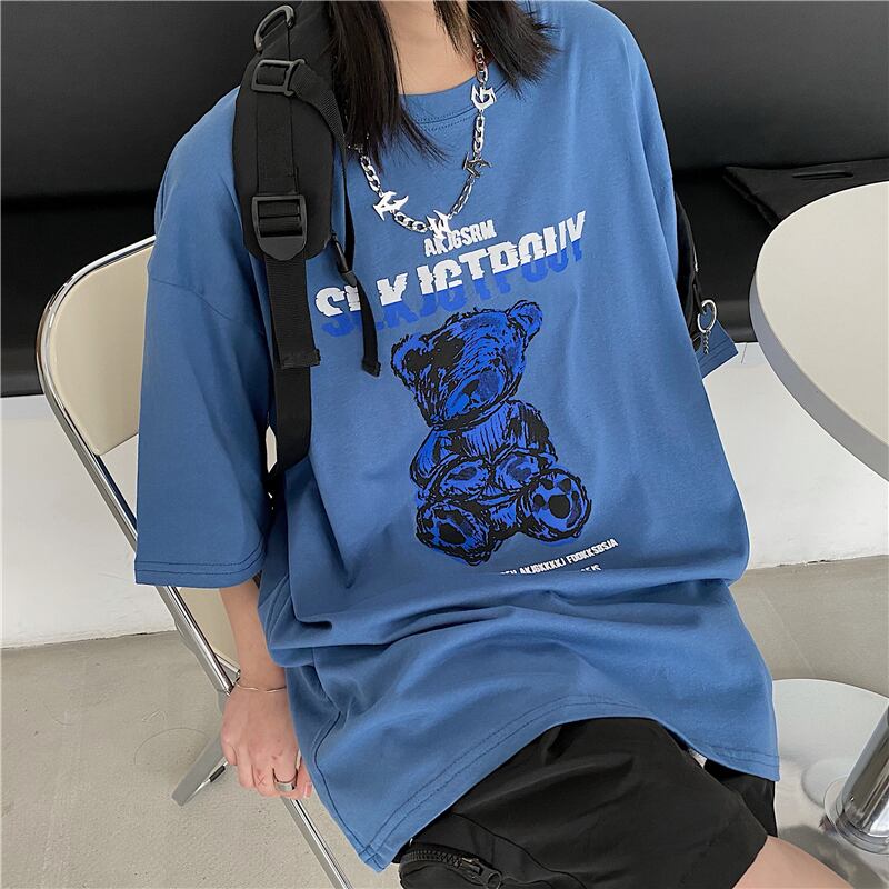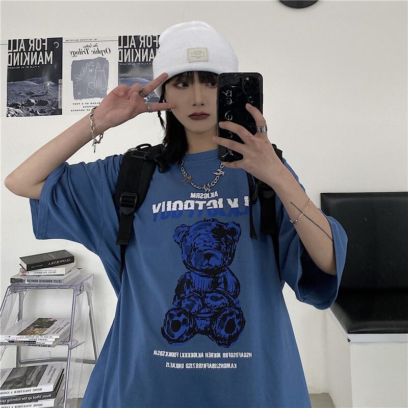 夏服ジャケット レディース韓国ファッショントレンドスタンダードプリント柄ルーズラウンドネックTシャツ レトロ 夏物 Oネック スタイル デーモン22716833075