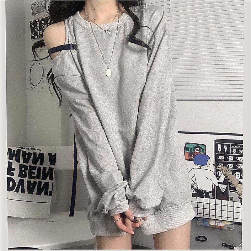 ストラップレスセーター レディース秋物ルーズラウンドネック薄手トップス コート オータム Oネック デーモン15496424365