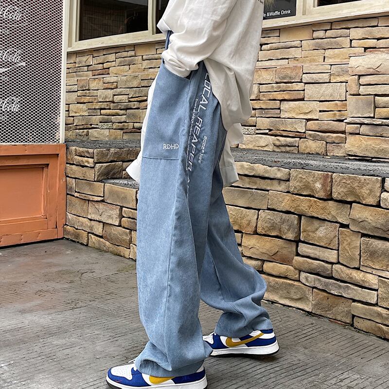コーデュロイパンツ 秋物ワイドレッグルーズウェスト レッド 刺繍 オータム ワイドパンツ ウエスト デーモン33827669327