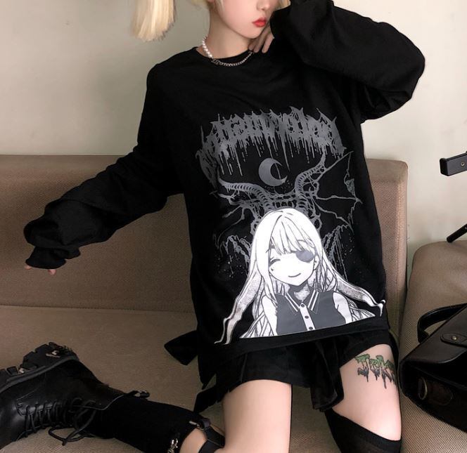 秋物ラウンドネックプルオーバー セーター レディースダークプリントルーズトップス コート ロング オータム Oネック 長袖 デーモン42959538365