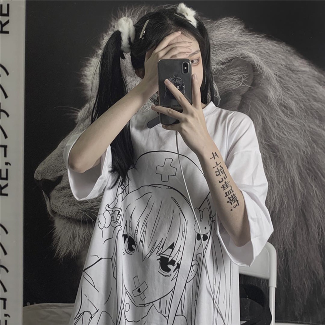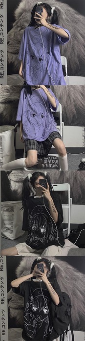 Tシャツトップス レディース夏服韓国ファッションNEWスタイルプリントルーズ半袖スリーブ ショート ハーフスリーブ 原宿 夏物 ボーイズ デーモン21946451636