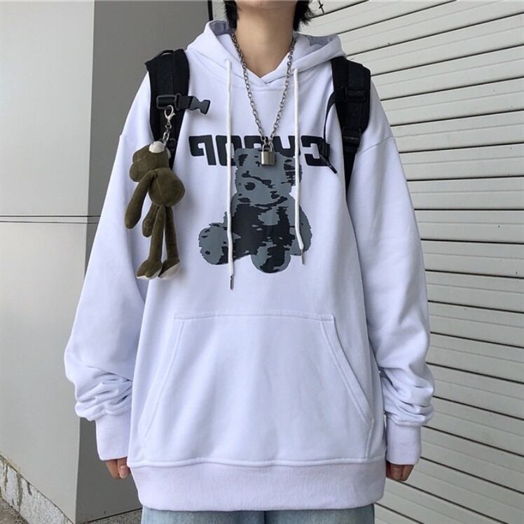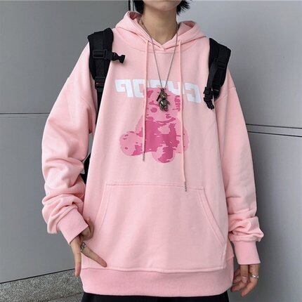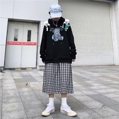 秋物セーター レディース韓国ファッションスタンダードプリント柄ルーズ薄手フードトップス ロング レトロ オータム スタイル 長袖 デーモン48190206173