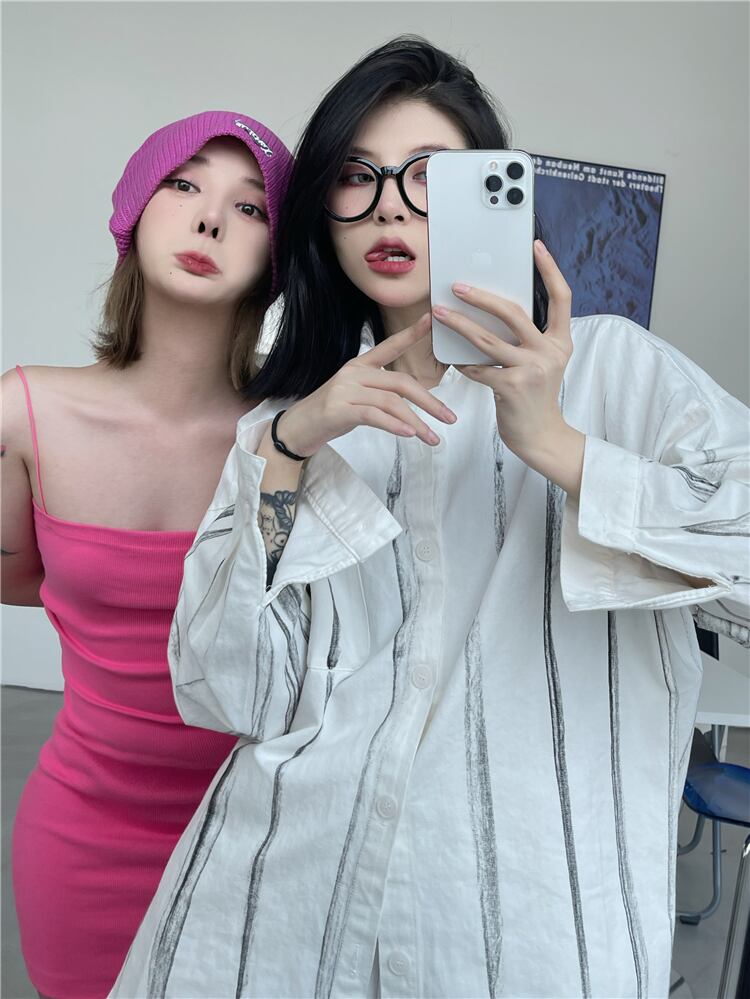 夏服薄手シャツ レディースルーズカジュアルトップス ロング 夏物 長袖 デーモン48199053683
