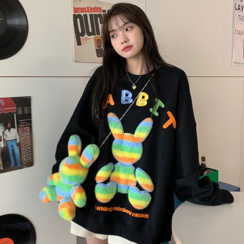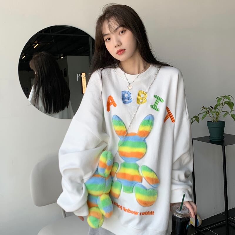 セーター レディース秋物韓国ファッションカラールーズラウンドネックシャツ ロング 大人ガーリー スウィート キュート カジュアル オータム Oネック スタイル 長袖 デーモン80210918023