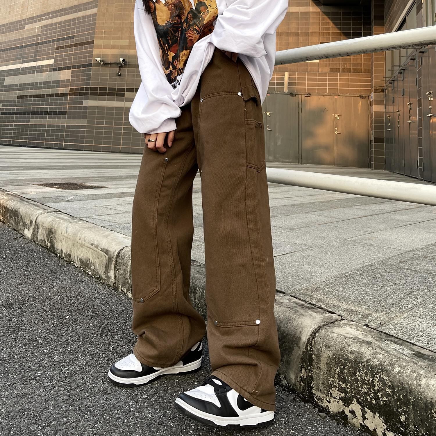 ジーンズ スプリングスタンダードハイウェストウェストルーズ薄手ワイドレッグパンツ レトロ 春物 ワイドパンツ ウエスト デーモン55733768988