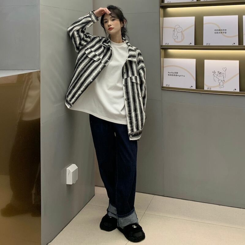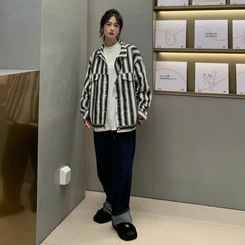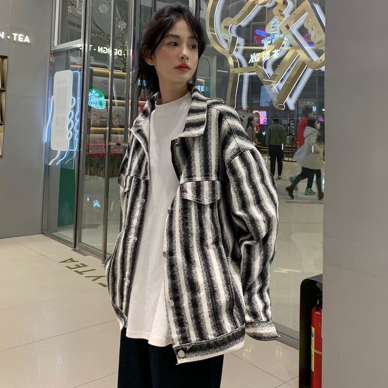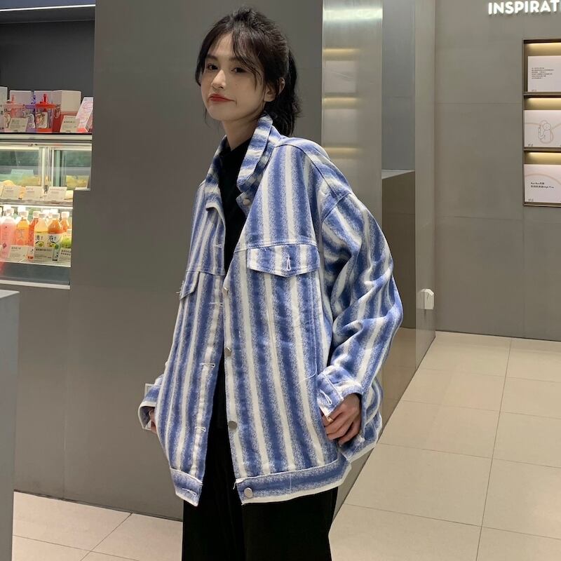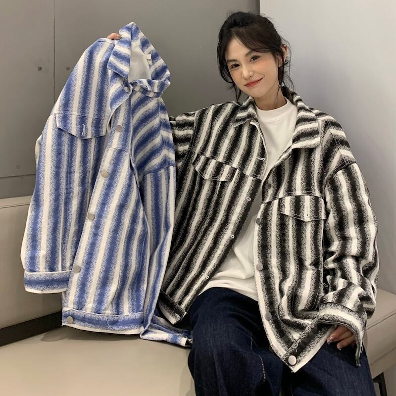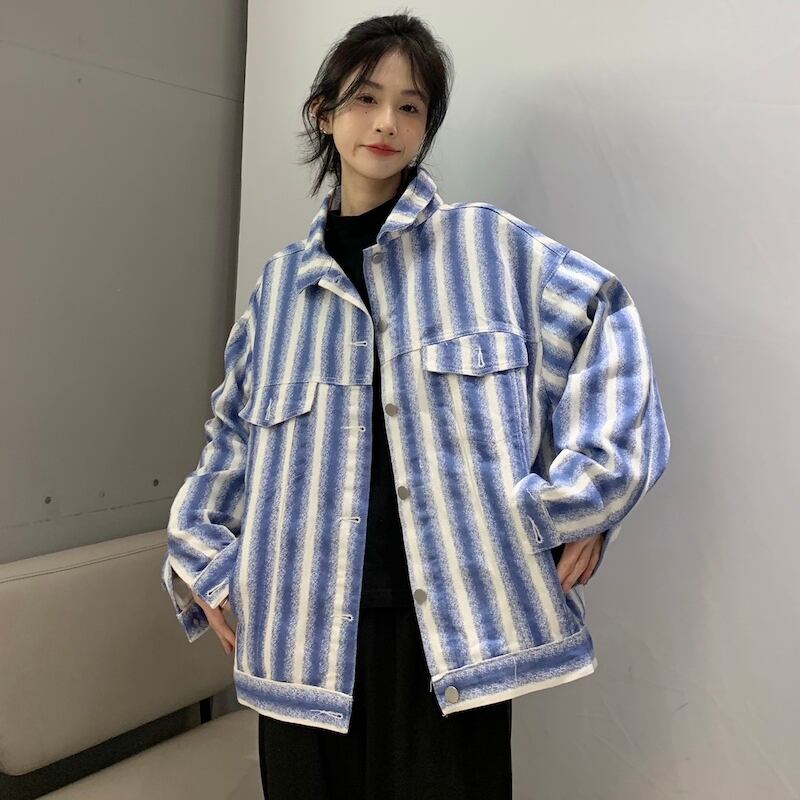 スタイルスタンダードジャケット スプリングストライプルーズカジュアルトップス レトロ 春物 デーモン34048704954