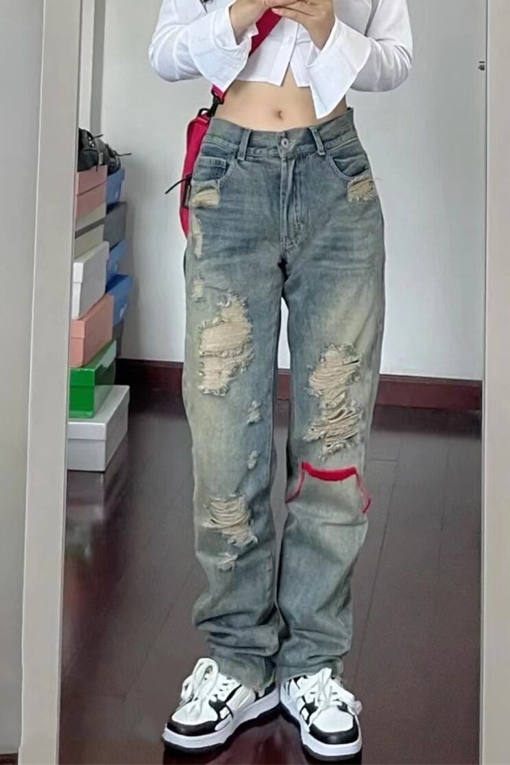 ジーンズ スプリングハイウェストルーズ薄手パンツ 春物 ウエスト デーモン10629988176