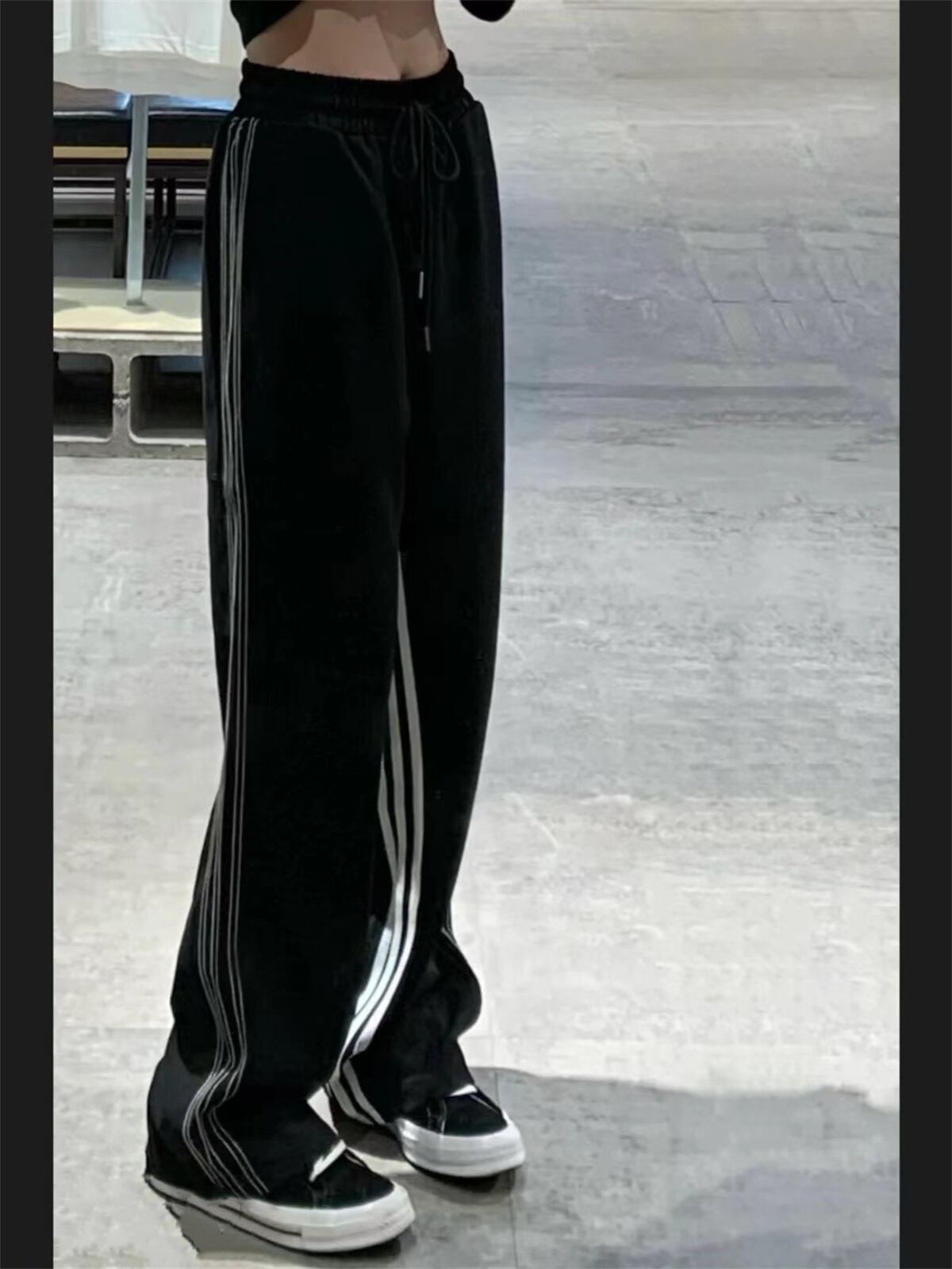 パンツ スプリングスタンダードブラックストライプルーズハイウェストウェストカジュアル レトロ 春物 ボーイズ ウエスト デーモン7144530890