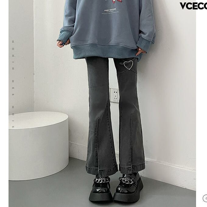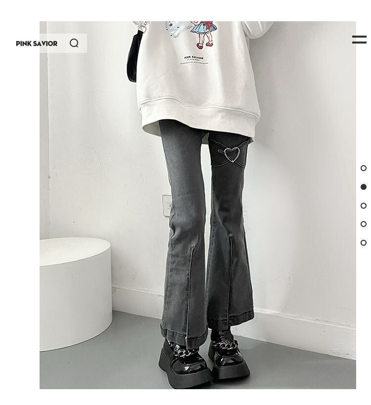 ハイウェストジーンズ スプリングスリムパンツ レッド 春物 ウエスト デーモン51147978829