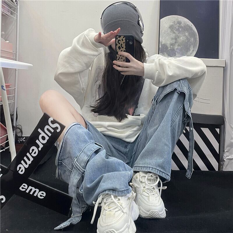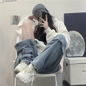 ジーンズ スプリングハイウェストウェストルーズ薄手ワイドレッグパンツ ストリート 春物 ワイドパンツ ウエスト デーモン40291302110