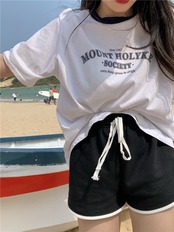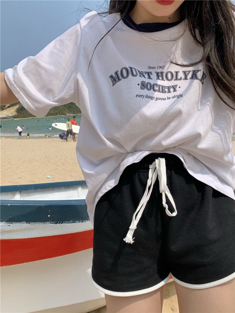 Tシャツスプリング韓国ファッションNEWカラープリント柄ルーズトップス 春物 スタイル デーモン80782435927