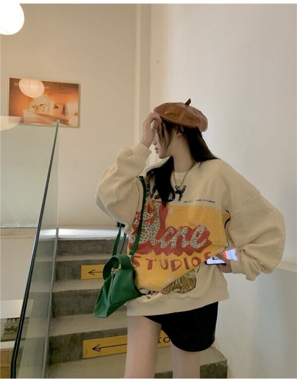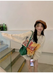 プリントラウンドネックセーター スプリング韓国ファッションNEWルーズトップス ロング ストリート 春物 Oネック スタイル 長袖 デーモン98641592963