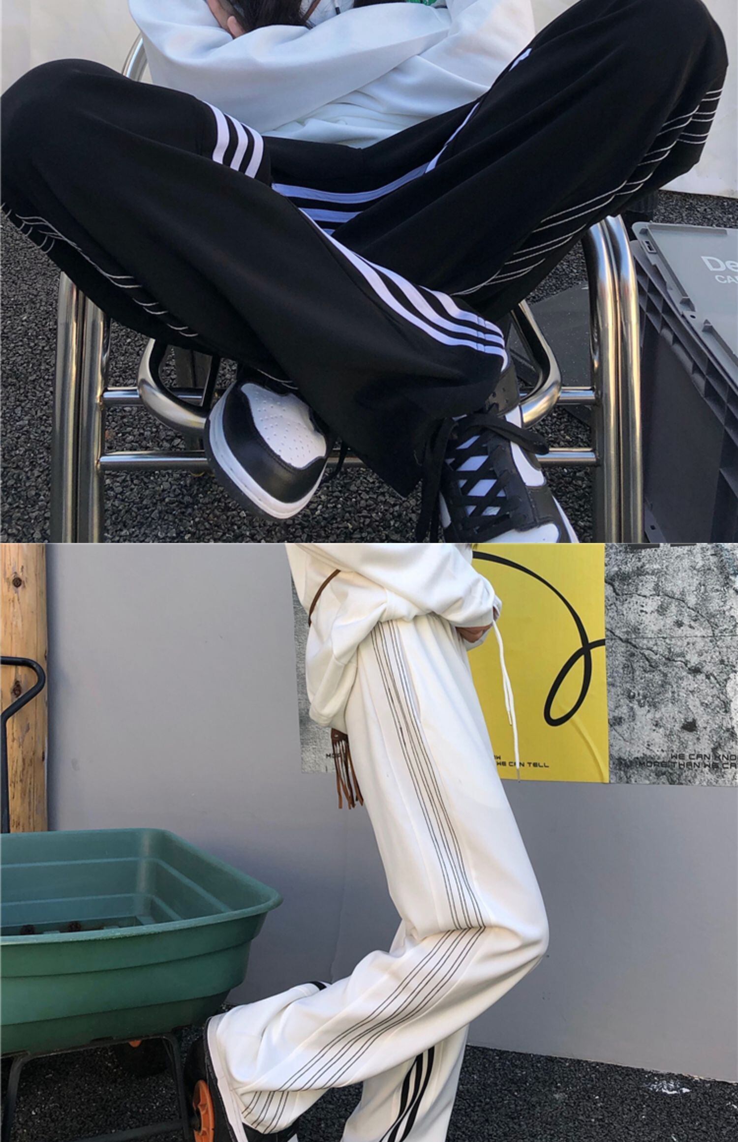 パンツ スプリングスタンダードストライプハイウェストウェストカジュアルルーズ薄手ワイドレッグ レトロ ストリート 春物 ワイドパンツ ウエスト デーモン26276476261