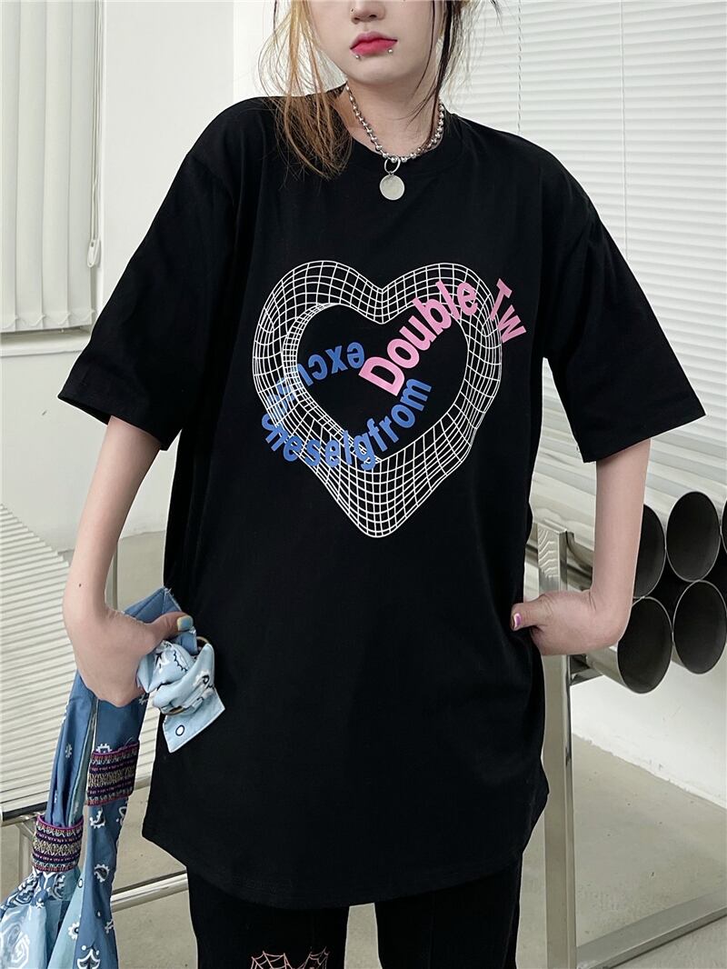 Tシャツスプリング韓国ファッションスタイルプリント柄ルーズトップス 原宿 春物 デーモン70223676923