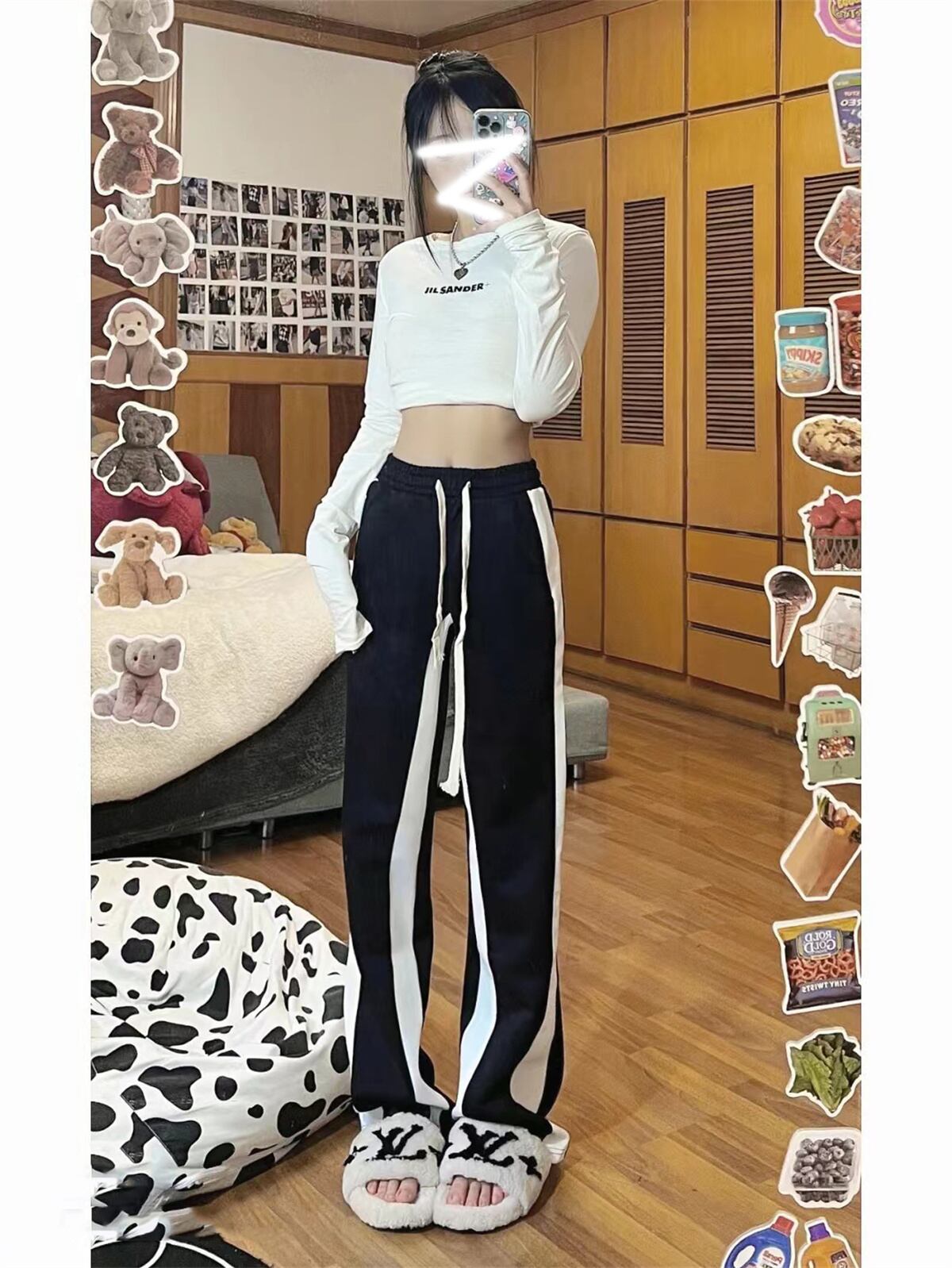 カラーカジュアルパンツ スプリングハイウェストウェストルーズ薄手ワイドレッグ ストリート 春物 ワイドパンツ ウエスト デーモン58048440397