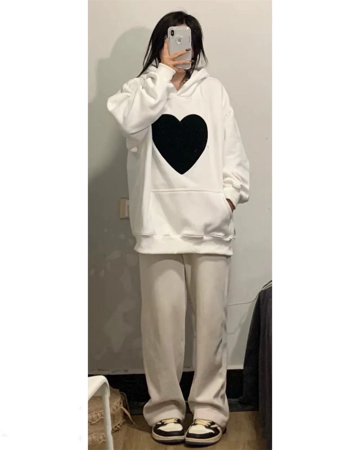 スタンダードフードセーター スプリングホワイトルーズトップス ロング レトロ 春物 長袖 デーモン10520467142