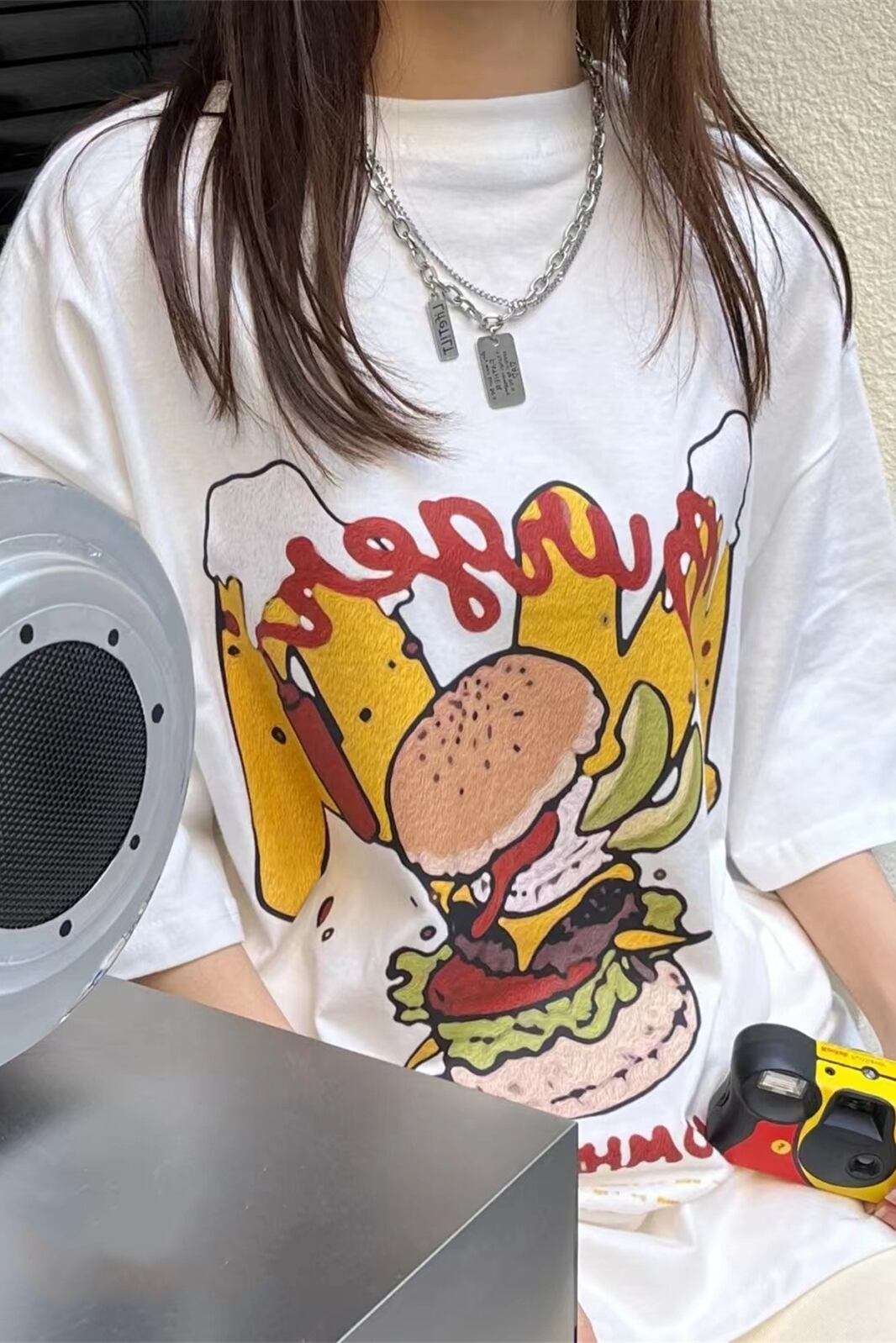 ホワイトTシャツ夏服スタンダードプリント柄ルーズトップス レトロ 夏物 ボーイズ デーモン31878838220