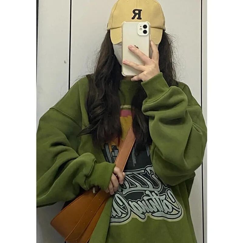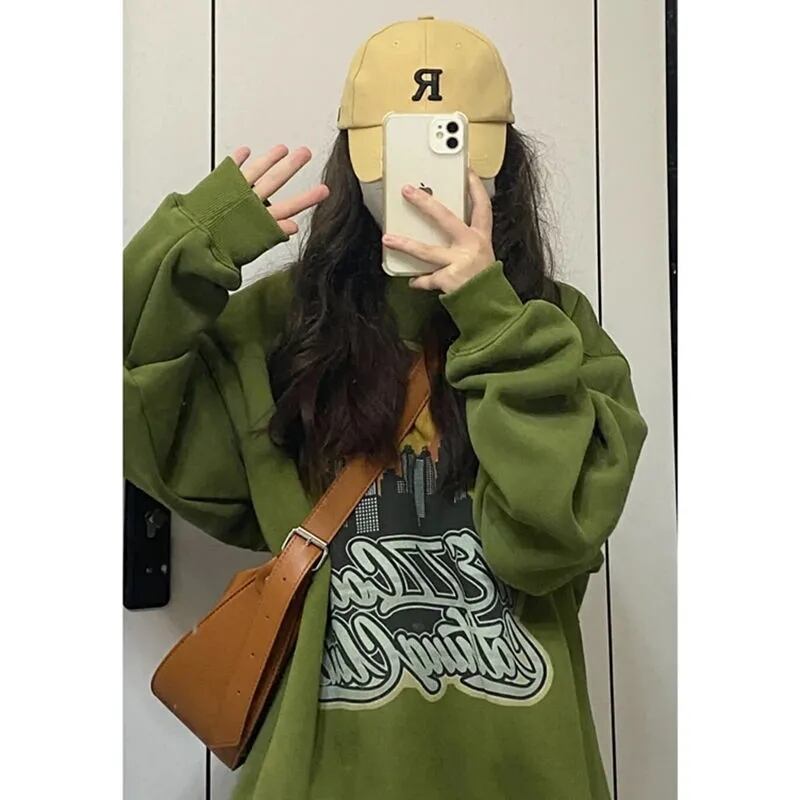 スタンダードオーバーサイズラウンドネックプリントセーター スプリングルーズトップス ロング レトロ 春物 Oネック 長袖 デーモン36290497371