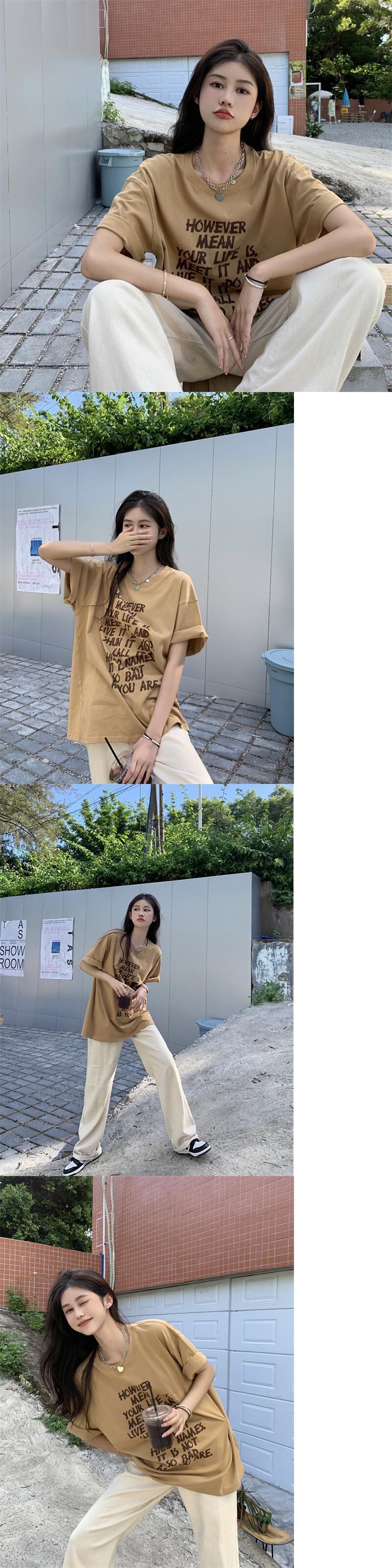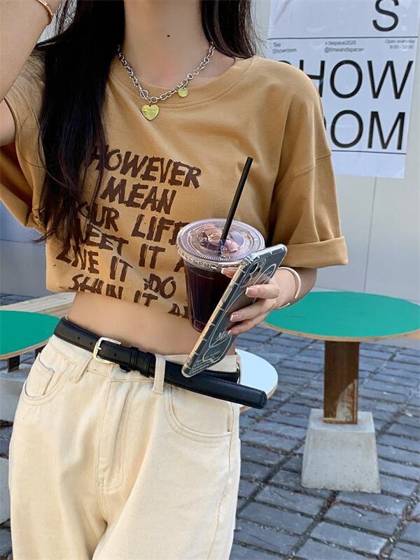 スタンダードプリント柄Tシャツスプリングルーズトップス レトロ 春物 デーモン96515261545
