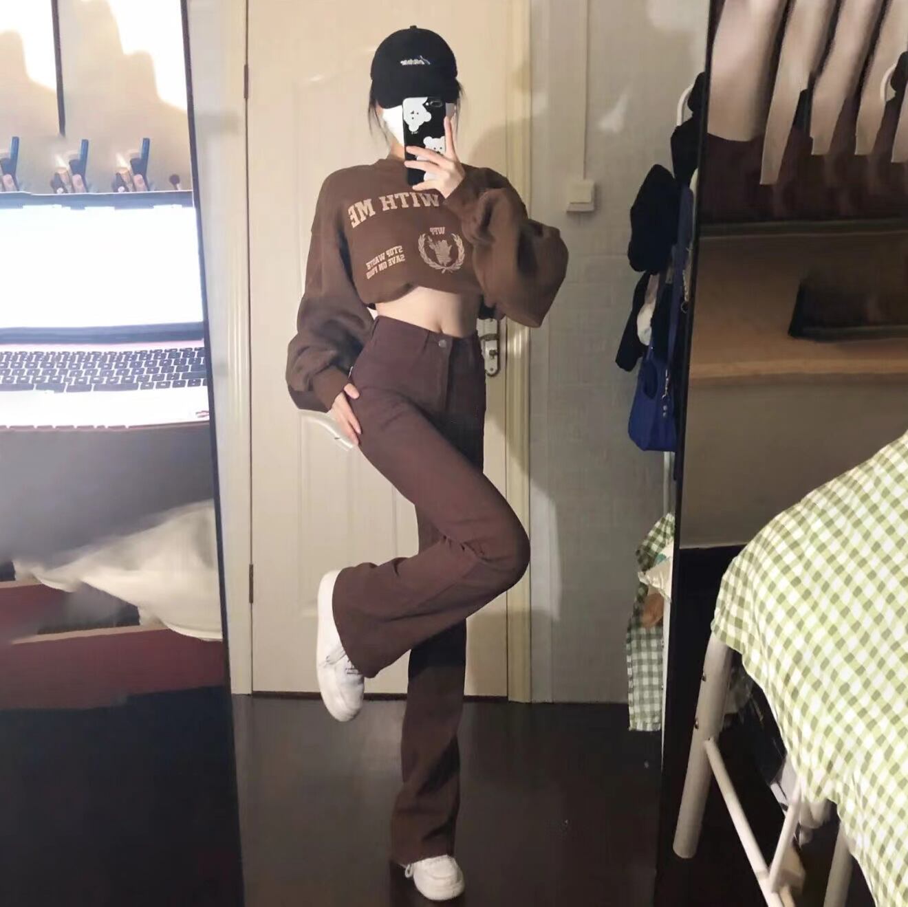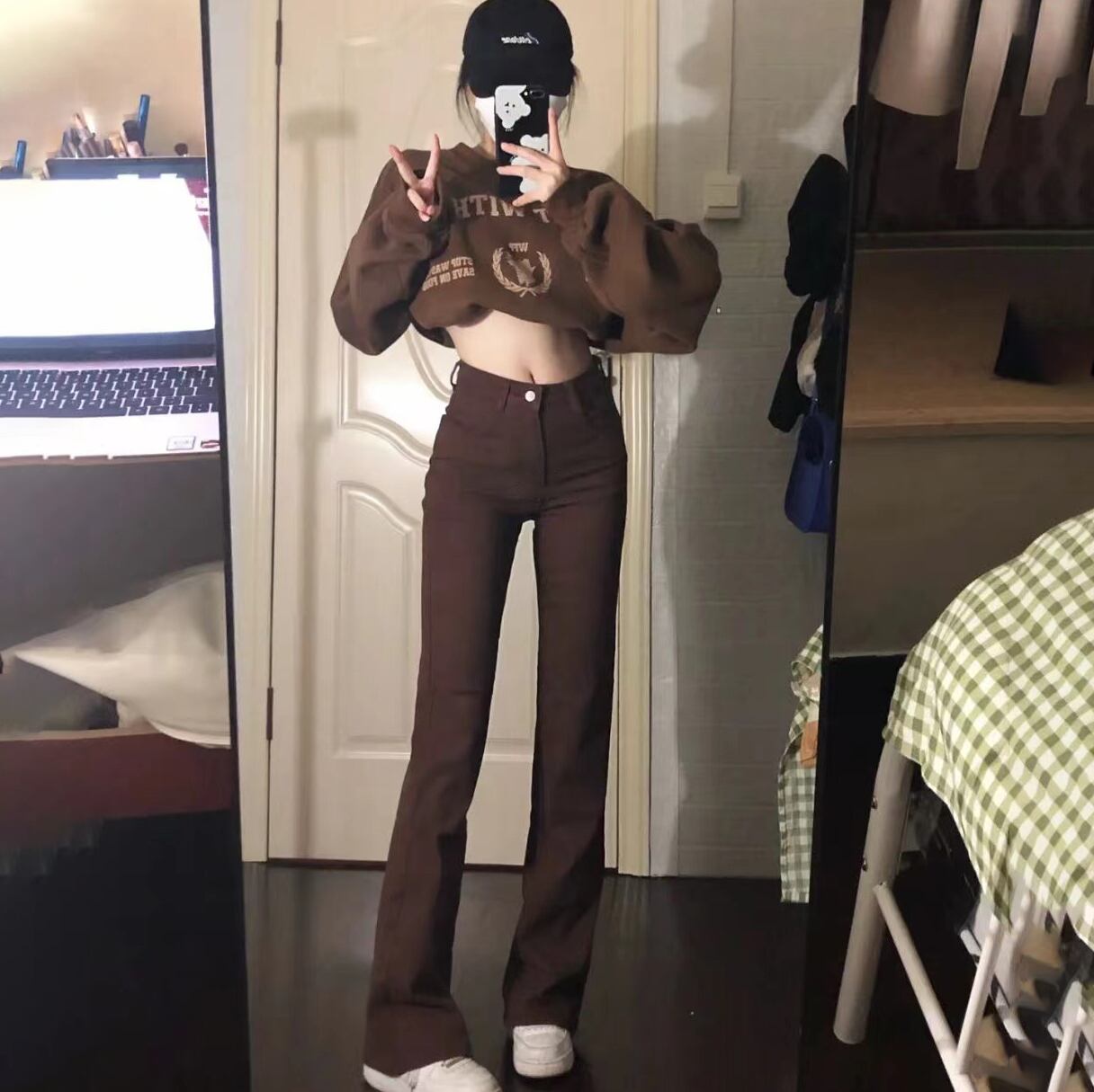 ジーンズ スプリングスタンダードハイウェストスリムフィット薄手パンツ レトロ 春物 ウエスト デーモン42486880409