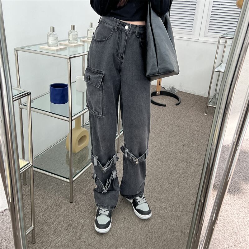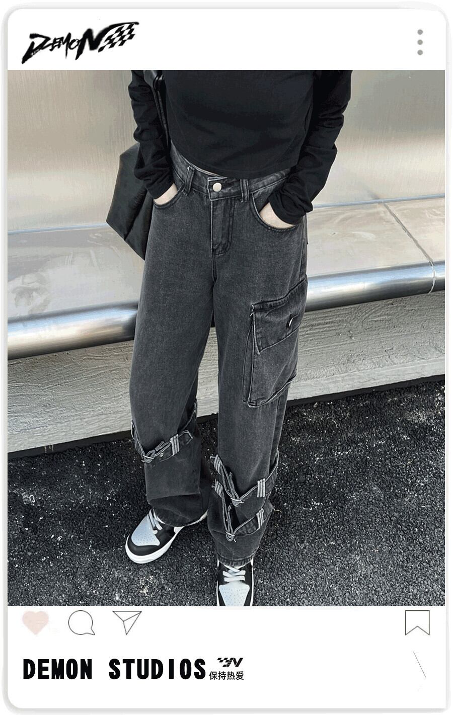 ジーンズ スプリングスタンダードハイウェストルーズ薄手パンツ レトロ ストリート 春物 ウエスト デーモン70087160008