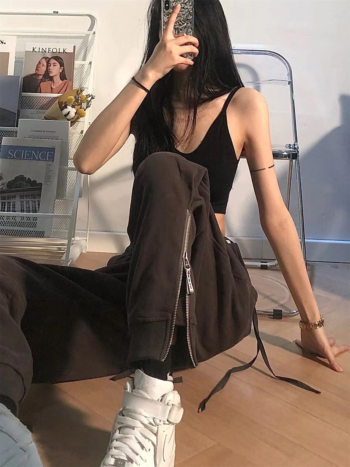 ジッパーカジュアルパンツ スプリングハイウェストルーズ薄手 春物 ウエスト デーモン30033145298