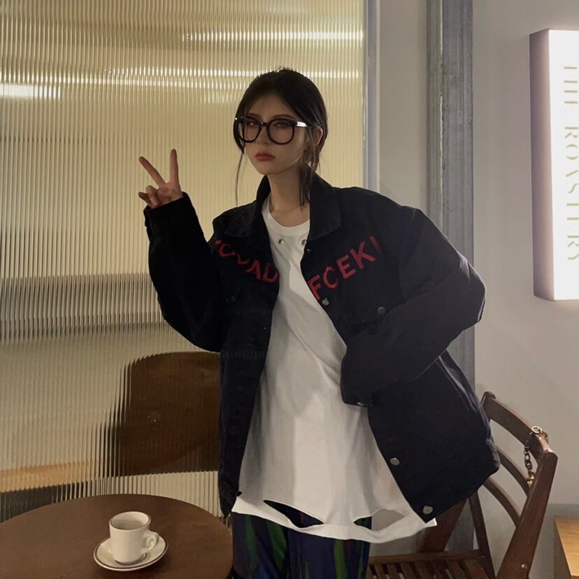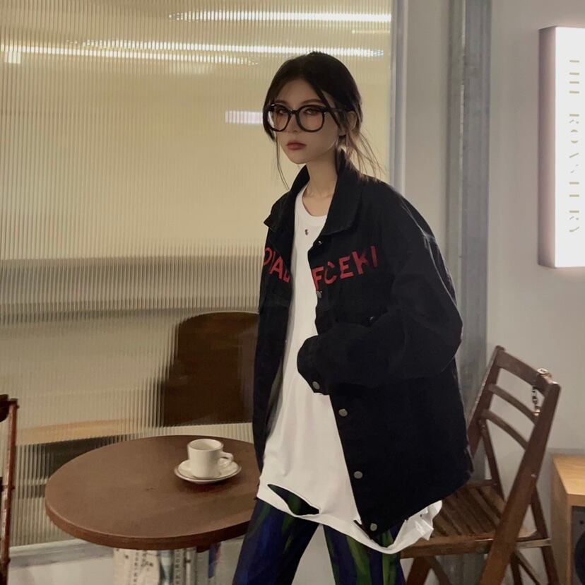 ジャケット スプリング韓国ファッションブラックルーズトップス レッド 刺繍 春物 スタイル デーモン42044345799