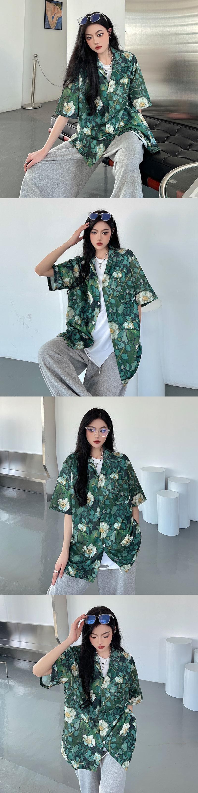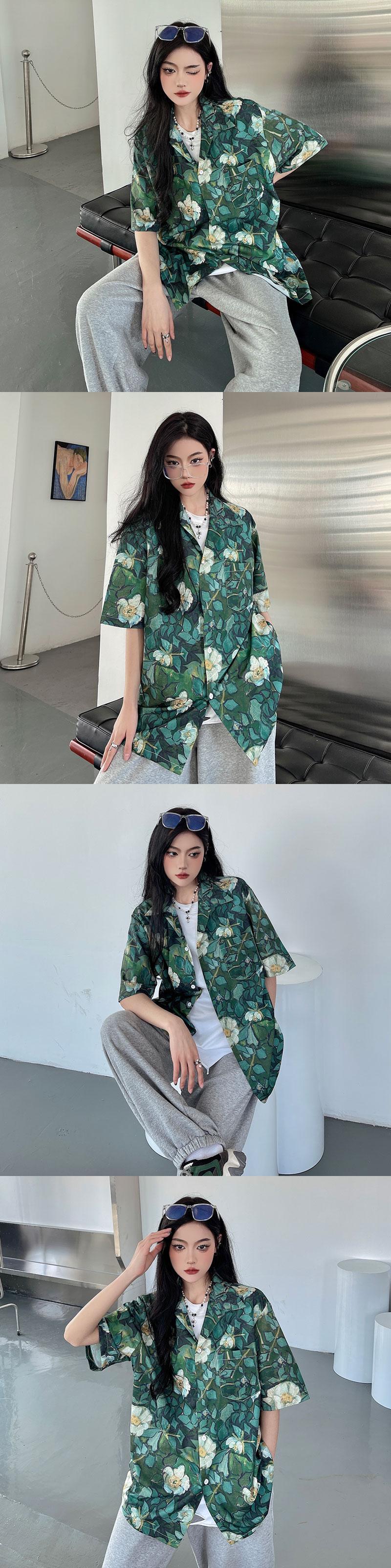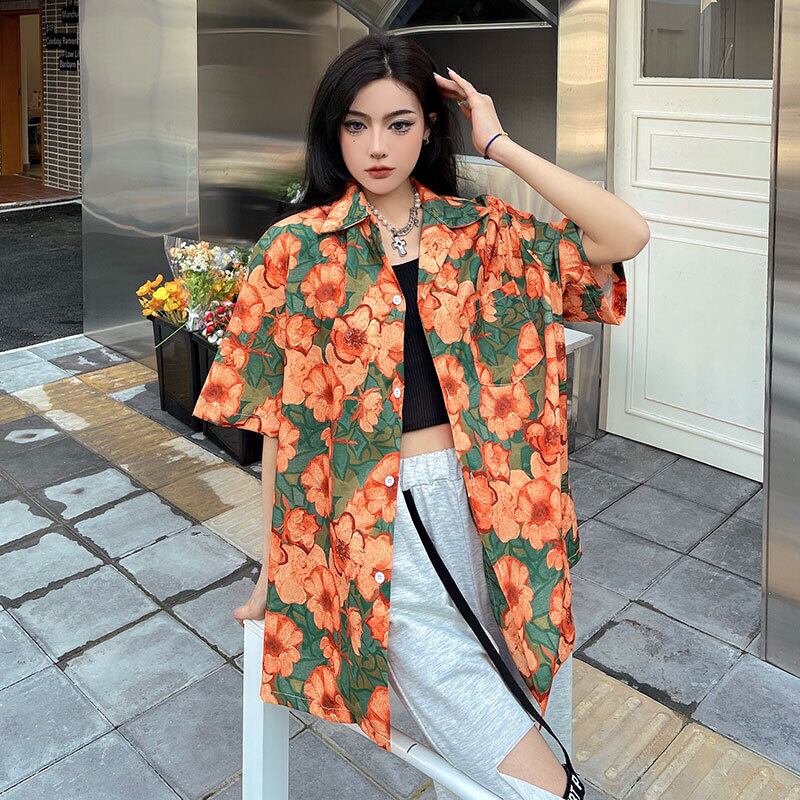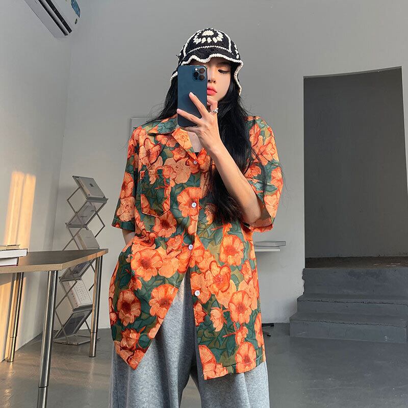 スタイルスタンダードフローラルシャツ 夏服NEWルーズ レトロ 夏物 花柄 ボーイズ デーモン86460125718