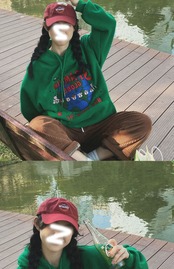 ウィンターフードセーター 韓国ファッションプリントルーズトップス ロング 冬物 スタイル 長袖 デーモン99622471772