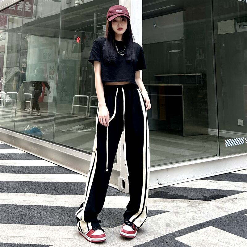 スタンダードストライプカジュアルパンツ スプリングハイウェストルーズ薄手 レトロ 春物 ウエスト デーモン34045471066