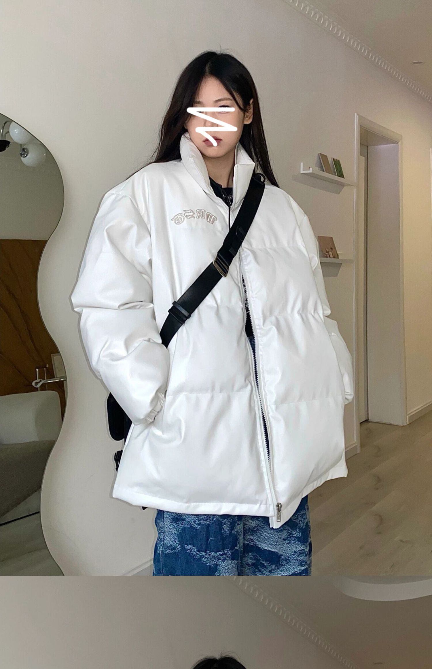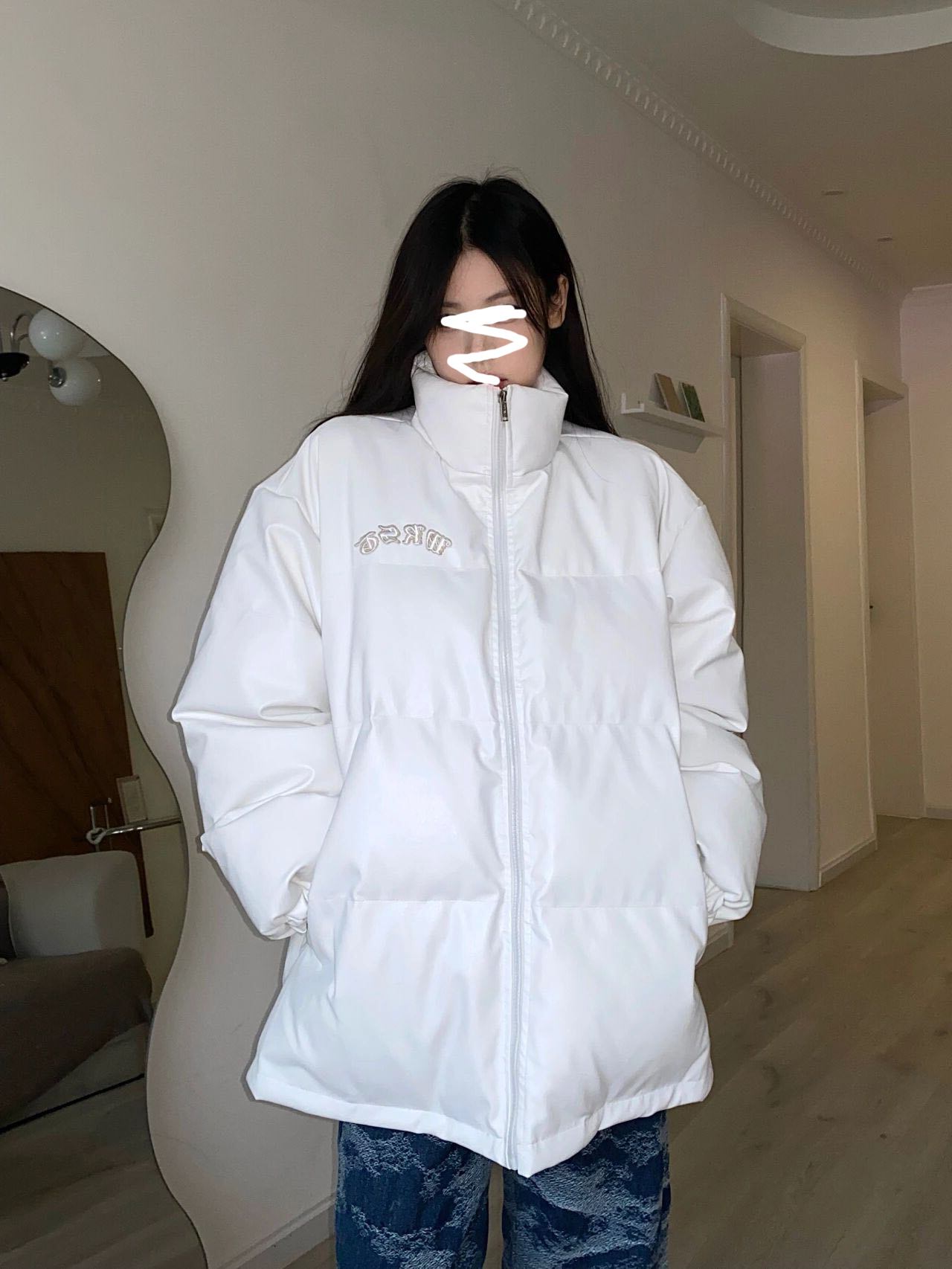 ウィンター韓国ファッションスタンダードホワイトレザールーズNEWジャケット コットン レトロ 冬物 スタイル デーモン94513796300
