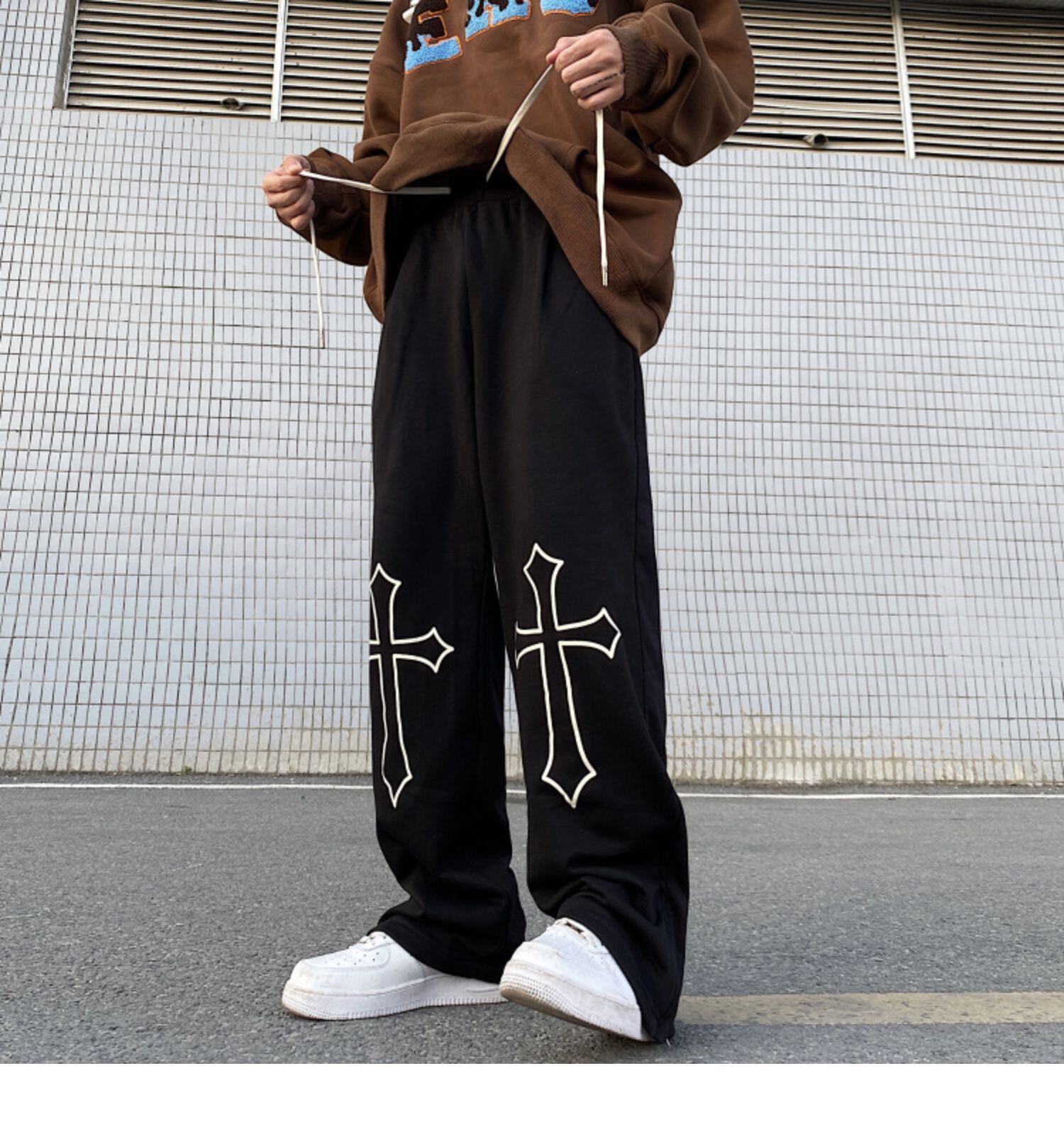 クロス厚みカジュアルパンツ 秋物ウィンターハイウェストルーズ薄手 オータム 冬物 ウエスト デーモン98504403214